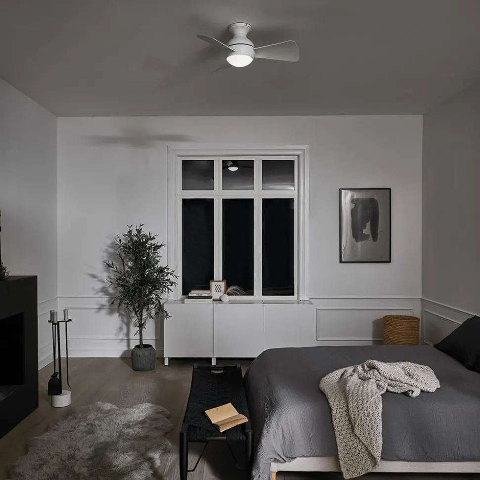 Sola LED plafondventilator met drie bladen en beschermingsgraad IP23 Het moderne design van de Sola LED plafondventilator heeft een stalen behuizing en bladen van ABS kunststof. Uitgerust met traploos dimbare LED verlichting. Een afstandsbediening wordt meegeleverd. Functies Sola is een eigentijds vormgegeven plafondventilator met geïntegreerde LED lamp en fungeert dus niet alleen als luchtverfrisser, maar ook als lichtbron die met de meegeleverde afstandsbediening comfortabel traploos geschakeld en gedimd kan worden. Met de afstandsbediening kunnen ook drie snelheden worden geschakeld. Uitgerust met een REVERSE functie, d.w.z. de draairichting van de bladen kan worden omgekeerd en zo van zomer- naar winterwerking worden omgeschakeld. Die resulterende gelijkmatige verdeling van de verwarmde ruimtelucht bespaart energiekosten. Technische gegevens – 3 snelheden: MIN. 123 tpm, MAX. 247 tpm – incl. omkeerfunctie – 53,8 W – AC-motor – gecirculeerd luchtdebiet: 4.048 m³