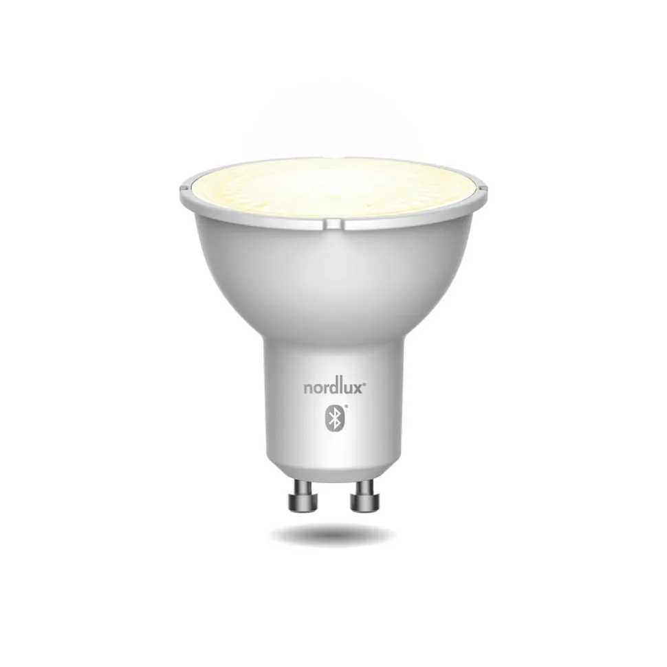 GU10 4,8W LED-reflector met dim- en CCT-functie in een praktische set van 3 De LED-reflector, die wordt geleverd in een praktische verpakking van 3, is eenvoudig en discreet. Door zijn conventionele ontwerp kan hij worden gebruikt in diverse armaturen met GU10 fitting. Het bijzondere hoogtepunt van de lampen zijn hun nuttige functies. Als onderdeel van de Nordlux Smart Light serie kunnen ze gekoppeld worden aan de bijpassende Nordlux Smart Light App. Het is dan mogelijk om de lampen via smartphone of tablet te bedienen, te dimmen en de kleurtemperatuur traploos te variëren van warm tot daglichtwit. De gewenste lichtomstandigheden kunnen in het hele woongedeelte worden gerealiseerd. Functie/ Compatibiliteit: – CCT-functie (2.200 K – 6.500 K) – 420 lumen – stralingshoek 36° – bediening via Bluetooth mesh technologie – dimbaar met gratis Nordlux Smart Light app via smartphone of tablet – bediening van maximaal 50 elementen, kamergroepen, timerfunctie, lichtscènes mogelijk via app – spraakbediening mogelijk met apart verkrijgbare bridge (Amazon Alexa, Google Assistant) – functies uitbreidbaar met Nordlux Smart accessoires