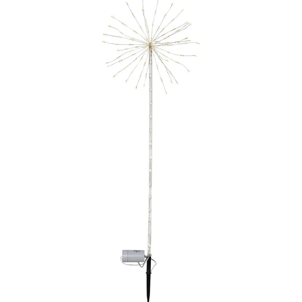 De Firework Outdoor LED decoratie lamp kan overal geplaatst worden, ongeacht het stopcontact, omdat deze op batterijen werkt. Deze leveren de 152 warmwitte LED’s, die gelijkmatig verdeeld zijn over de afzonderlijke stutten van het armatuur. In het donker ontstaat een fascinerend beeld, als een momentopname van een vuurwerk dat op het punt staat te ontploffen. De geïntegreerde timer laat Firework Outdoor 6 uur lang oplichten vanaf het moment dat het voor het eerst wordt ingeschakeld en schakelt het vervolgens 18 uur lang uit voordat het automatisch weer wordt ingeschakeld.