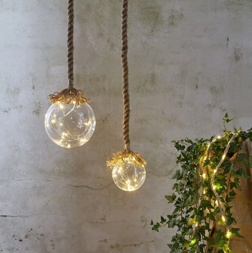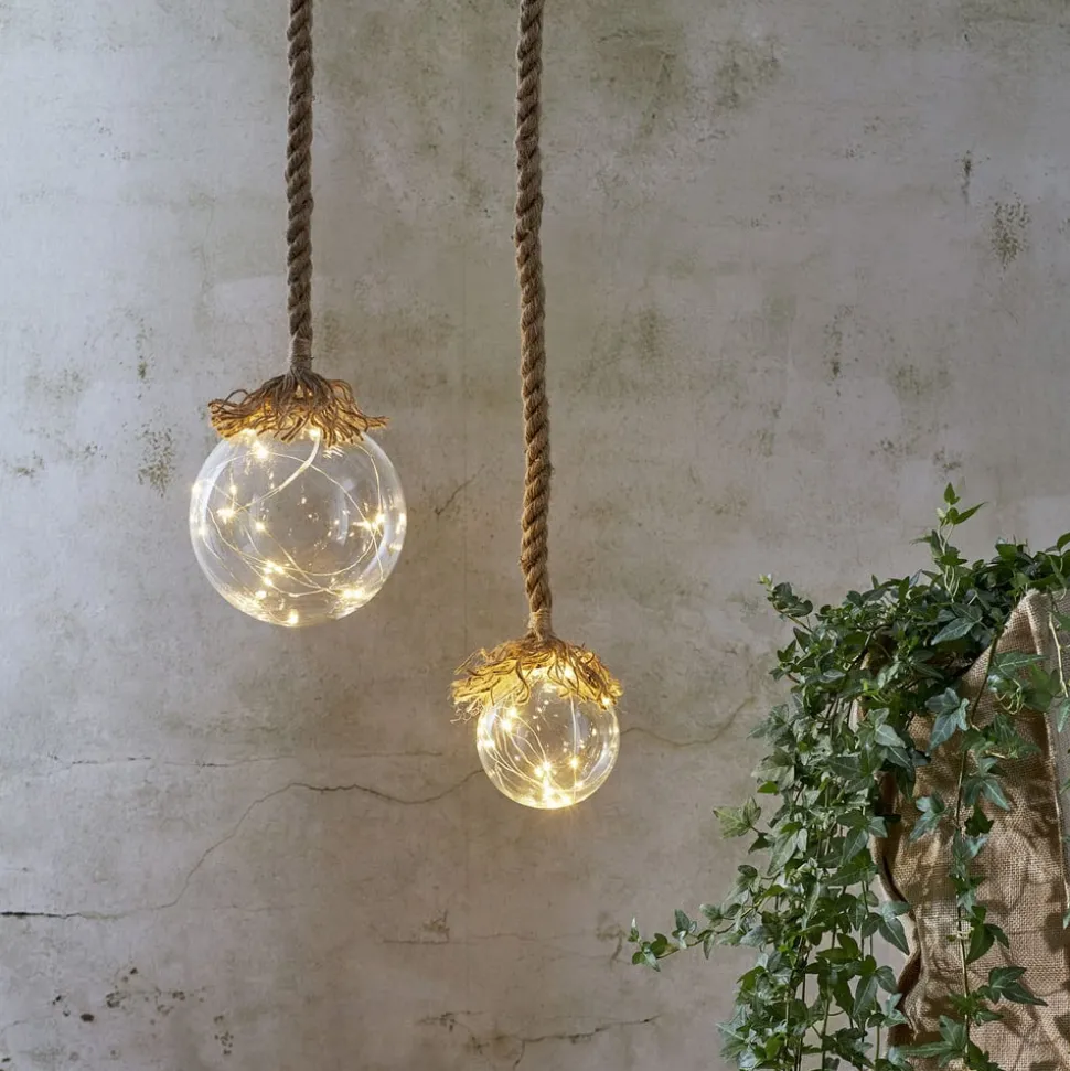LED-decoratielamp Jutta met glazen bol en touwophanging