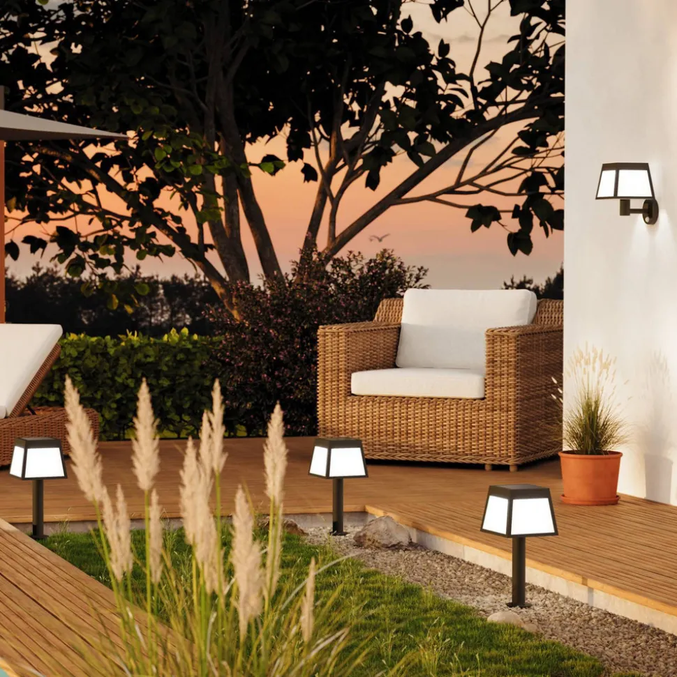 LED sokkellamp op zonne-energie met grondspies De Altilia LED sokkellamp op zonne-energie combineert modern design met intelligente verlichtingstechnologie. De lamp, uitgevoerd in zwart kunststof, past naadloos in elk buitenontwerp en biedt een energiebesparende verlichtingsoplossing dankzij de geïntegreerde LED lamp. De geïntegreerde sensor zorgt voor automatische activering van de lamp wanneer beweging wordt gedetecteerd, wat niet alleen gemak maar ook veiligheid in de buitenruimte biedt. Mobiel gebruik dankzij geïntegreerde grondspies en een highlight voor elk pand – Verlichtingsduur met volledig opgeladen batterij: ongeveer 6-8 uur – Geïntegreerde lithium-ionbatterij van 2200 mAh – Bewegingssensor: detectiebereik 6 m, detectiehoek: 120° – Montagehoogte: 2,5 m – Helderheidsdrempel instelbaar: 100 % of 30