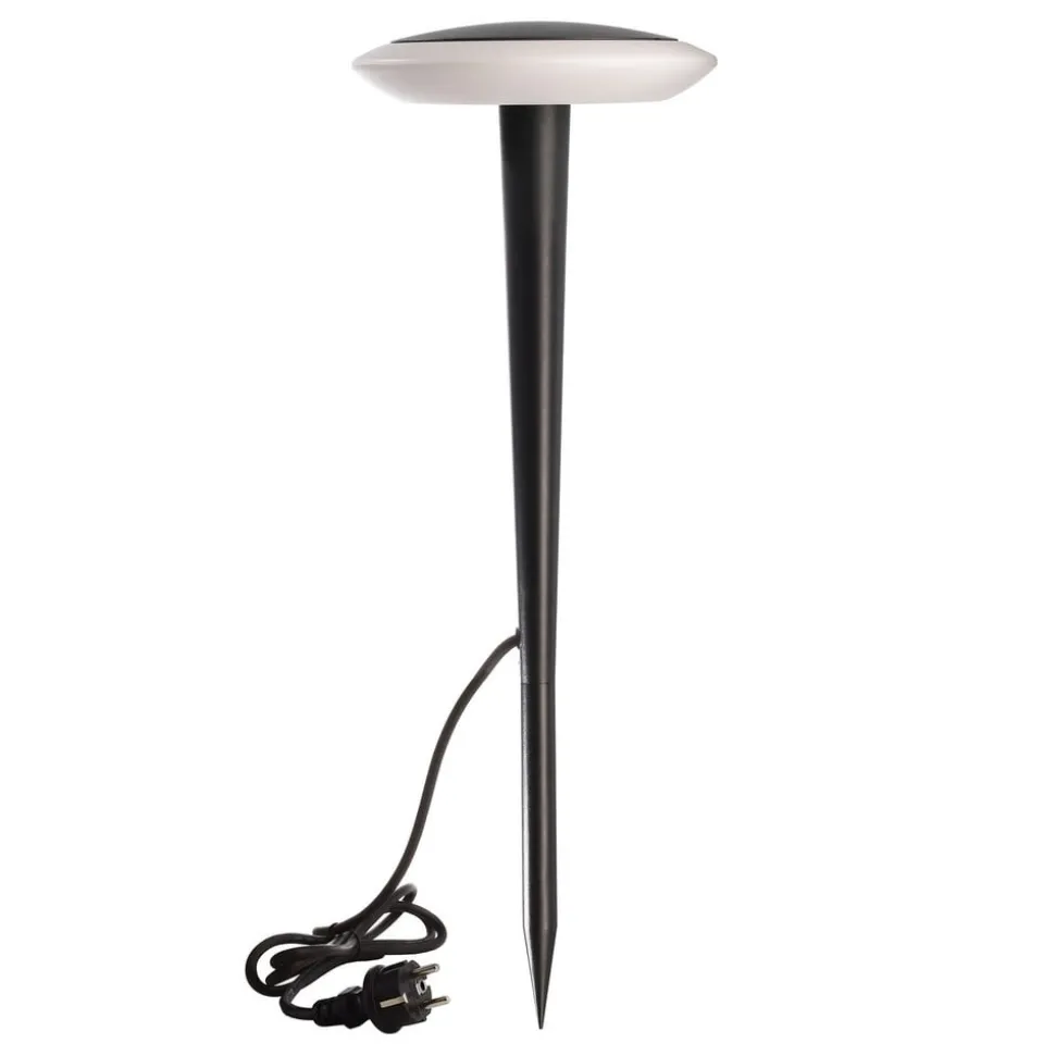 De moderne Bermuda LED-basisarmatuur bestaat uit een slanke voet met een grondspies en een discusvormige armatuurkop waarin warmwitte LED’s zijn gemonteerd. Deze zorgen voor voldoende verlichting rondom. Ideaal voor gebruik buitenshuis, bijvoorbeeld in bloemperken, bij huisingangen of ook in patio’s.
