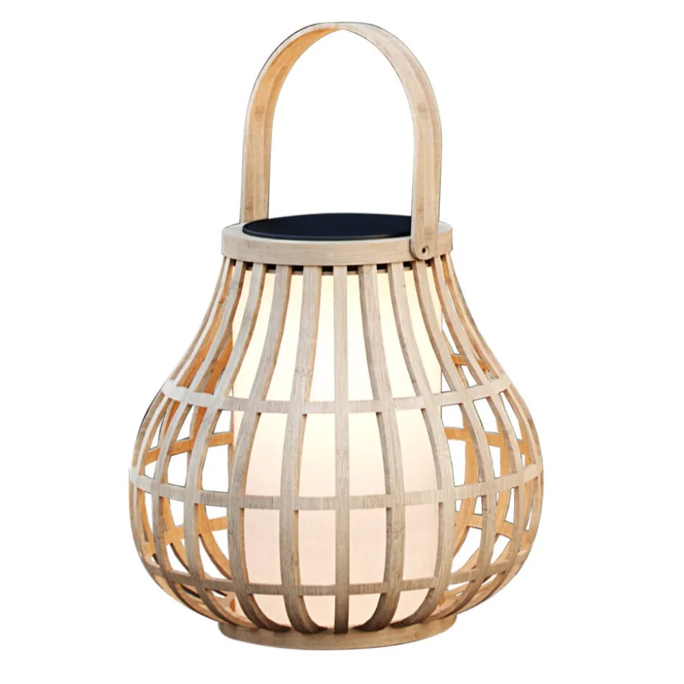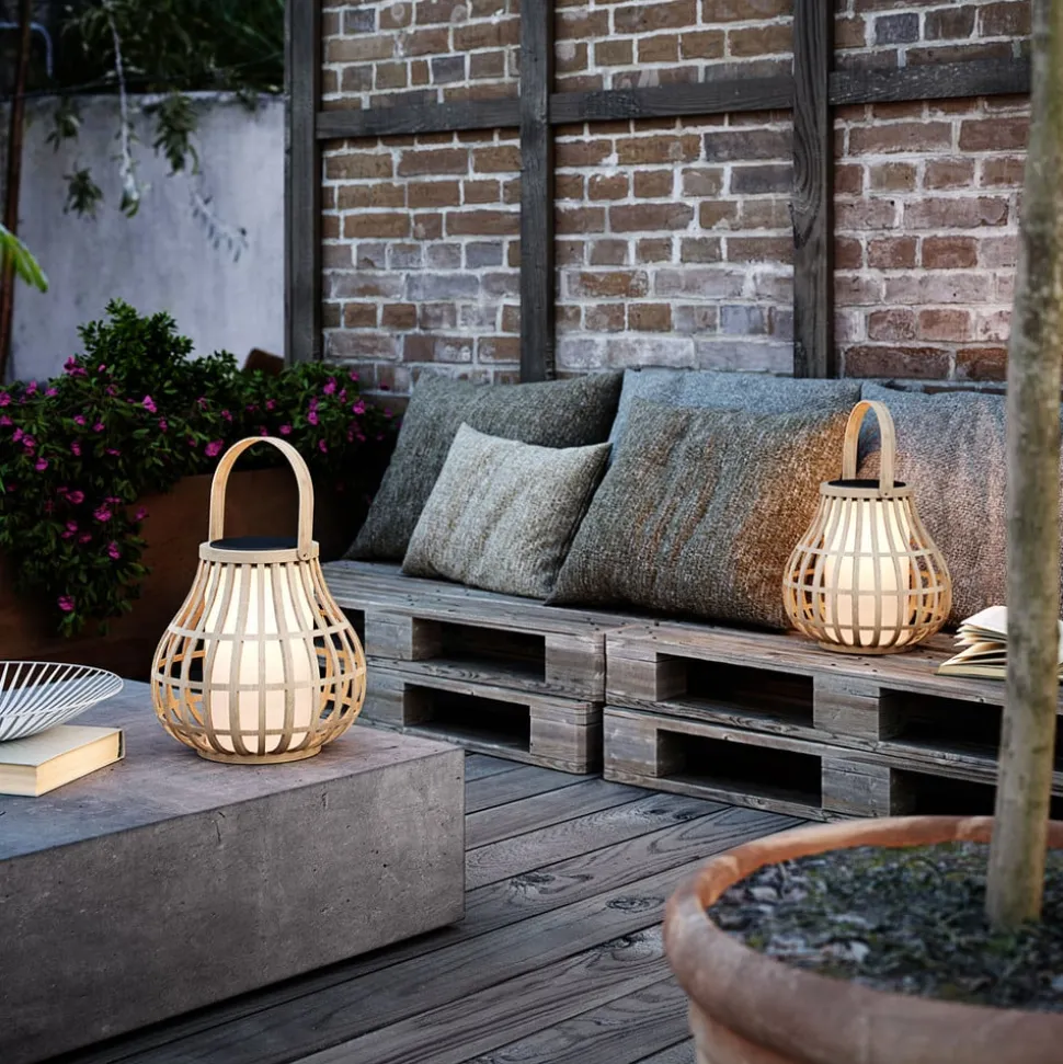 De Leo solarlamp, ontworpen door Says Who, is gemaakt van FSC-gecertificeerd bamboe, dat een mooi bolvormig net rond de lichtbron vormt. Het zonnepaneel zet energie van de zonnestralen om in elektriciteit. De ingebouwde oplaadbare batterij slaat deze energie op en de schemeringssensor schakelt het licht automatisch aan als het donker wordt. De batterij kan ook worden opgeladen via de meegeleverde USB-kabel, bijvoorbeeld als er niet genoeg zonlicht is. Met de draaggreep is Leo uitstekend te vervoeren en is het zowel binnen als buiten een populaire tafellamp. De gebogen vorm en het lichte bamboehout zorgen voor een zachte en natuurlijke uitstraling, die perfect is voor warme zomeravonden.