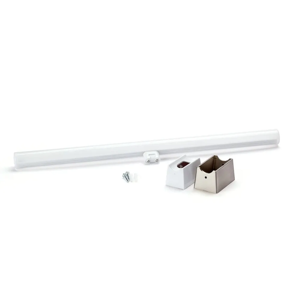Horizontaal boven de spiegel gemonteerd of als duo aan de zijkant van de spiegel – de Visagist LED-spiegelarmatuur zorgt voor optimale lichtomstandigheden aan de badkamerspiegel. In de metalen wandhouder van de armatuur zit een S14d LED lijnlamp van opaal witte kunststof, die een warm witte lichtkleur heeft en aan het einde van haar lange levensduur kan worden vervangen.