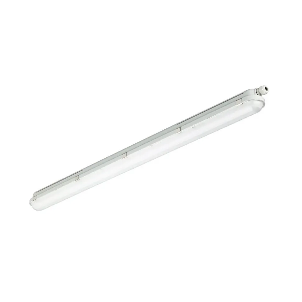 De WTC120C-diffusorarmatuur uit de Philips CoreLine Waterproof G2 LSC-serie, die is uitgerust met efficiënte LED-technologie met een lange levensduur, is een energiebesparend alternatief voor conventionele armaturen met fluorescentiebuizen. WTC120C is gemaakt van slagvast polycarbonaat in een jet-proof ontwerp. Levering inclusief beugels voor opbouwmontage en haken voor pendelmontage. Perfect voor sanitaire ruimten, kelders, opslagruimten, parkeerterreinen en werkplaatsen.