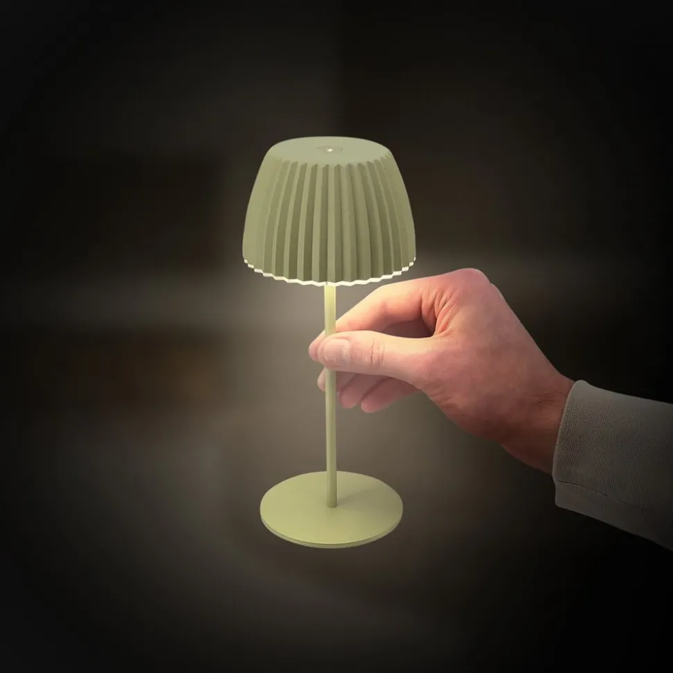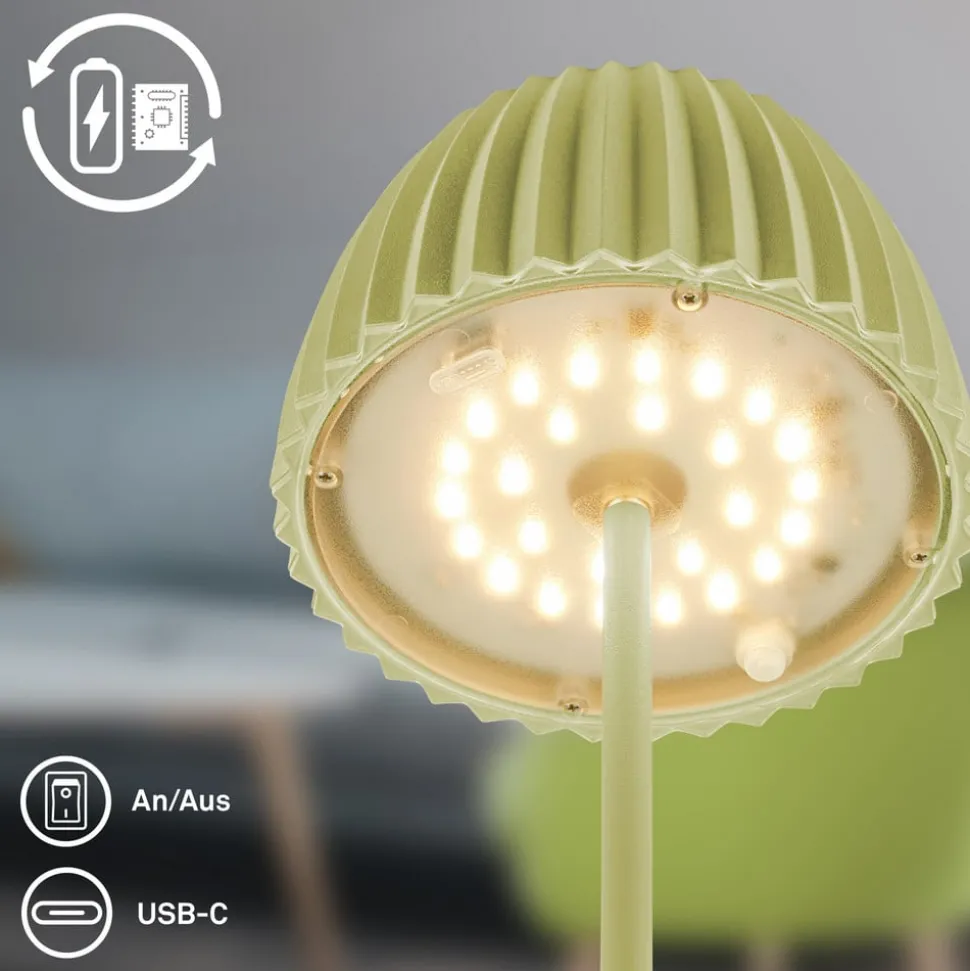 LED tafellamp Brilo unplugged Riffle met lichtrand op de kap – warmwitte lichttemperatuur van 2.700 K – praktische traploze touchdimmer – een USB-C oplaadkabel is inbegrepen – incl. geheugenfunctie – met volle batterij op het laagste helderheidsniveau tot maximaal 24 uur verlichting – German Design Award Winner 2025