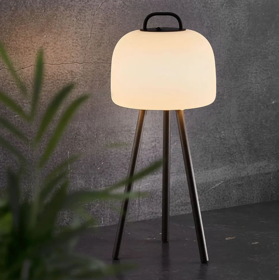 Of het nu binnenshuis is of op het terras of balkon en ook buiten in restaurants of soortgelijke commerciële ruimtes – de LED-tafelverlichting Kettle zorgt voor zowel gezelligheid als effectieve verlichting. De vloerlamp bestaat uit een driepotig frame waarop een kap van wit polyethyleen zit, die aan de bovenzijde voorzien is van een praktische draaggreep zodat de tafellamp draagbaar is. Maar dit is vooral te danken aan het feit dat hij is uitgerust met een oplaadbare batterij die voldoende is voor maximaal 15 uur verlichting en alleen dan moet hij worden opgeladen door middel van een USB-kabel.