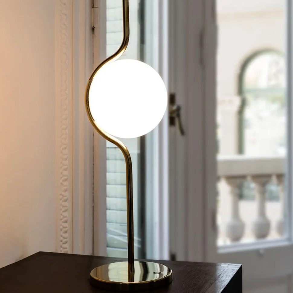 De bijzondere tafellamp Le Vita is gemaakt door de Nahtrang Studio. Met deze tafellamp creëerden de twee productontwerpers Daniel Vila en Esther Pujol een modern lichtobject met een unieke uitstraling. Ter herinnering aan de maan aan de horizon en de zwaartekracht die ons omringt, lijkt de lichtbol van opaalglas van de tafellamp Le Vita te zweven, alleen vastgehouden door het hoogwaardige aluminium frame in gouden kleur. De LED’s in het glas zorgen voor een zachte en gelijkmatige verlichting van de omgeving. Een praktische aan/uit-schakelaar in de vorm van een touch-functie op de basis maakt het succesvolle totaalpakket compleet.
