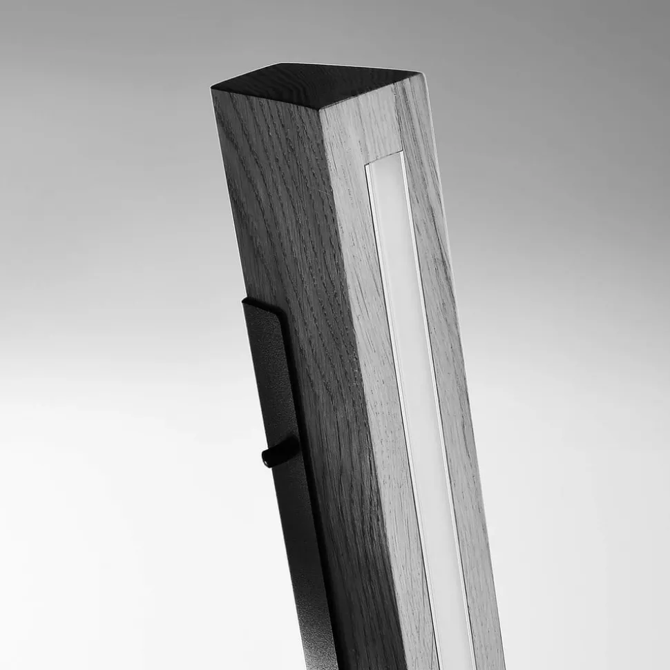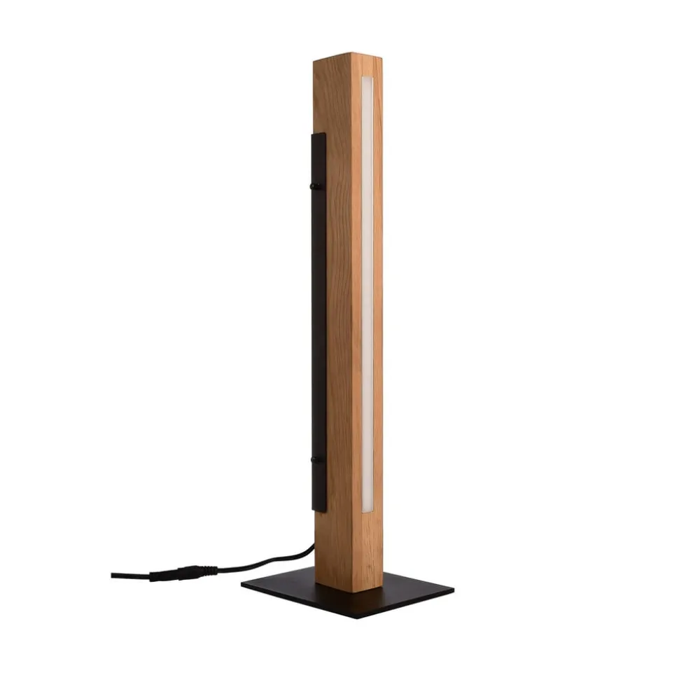 Moderne LED tafellamp Madera van eikenhout, voorzien van touchdimmer