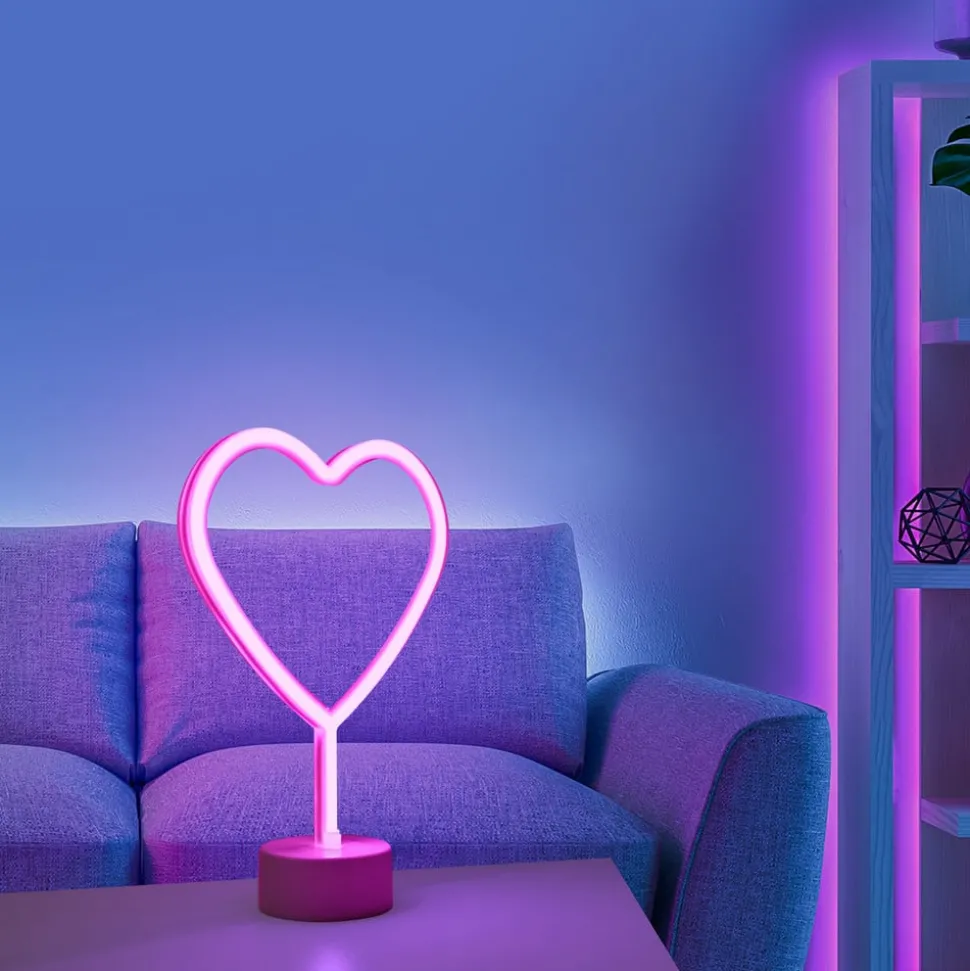 LED tafellamp Neon Hart, op batterijen