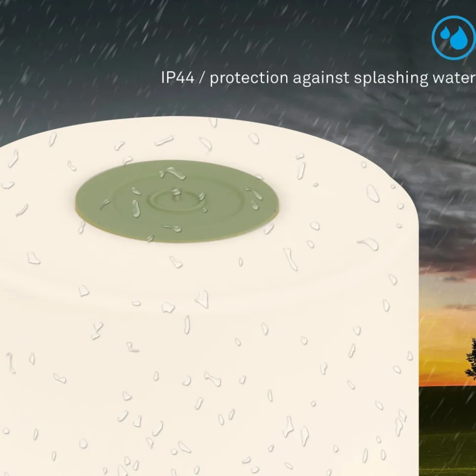 Compacte LED tafellamp 74610 met oplaadbare batterij en touchdimmer, warm wit (2.700 K)De kleine LED tafellamp in cilindervorm is uitgerust met een oplaadbare batterij en kan daardoor flexibel overal binnenshuis worden geplaatst en dankzij beschermingsklasse IP44 ook op het terras of in de tuin als sfeervolle lichtbron zonder storende kabel. De batterij kan worden opgeladen via de meegeleverde USB-oplaadkabel (zonder netadapter). De lamp wordt in- en uitgeschakeld via de schakelaar die in de voet van de lamp is geïntegreerd. De lamp kan op drie helderheidsniveaus worden geschakeld (100 %, 50 % of 20 % helderheid) via de aanraakschakelaar bovenop de lamp door de sensor herhaaldelijk aan te raken.