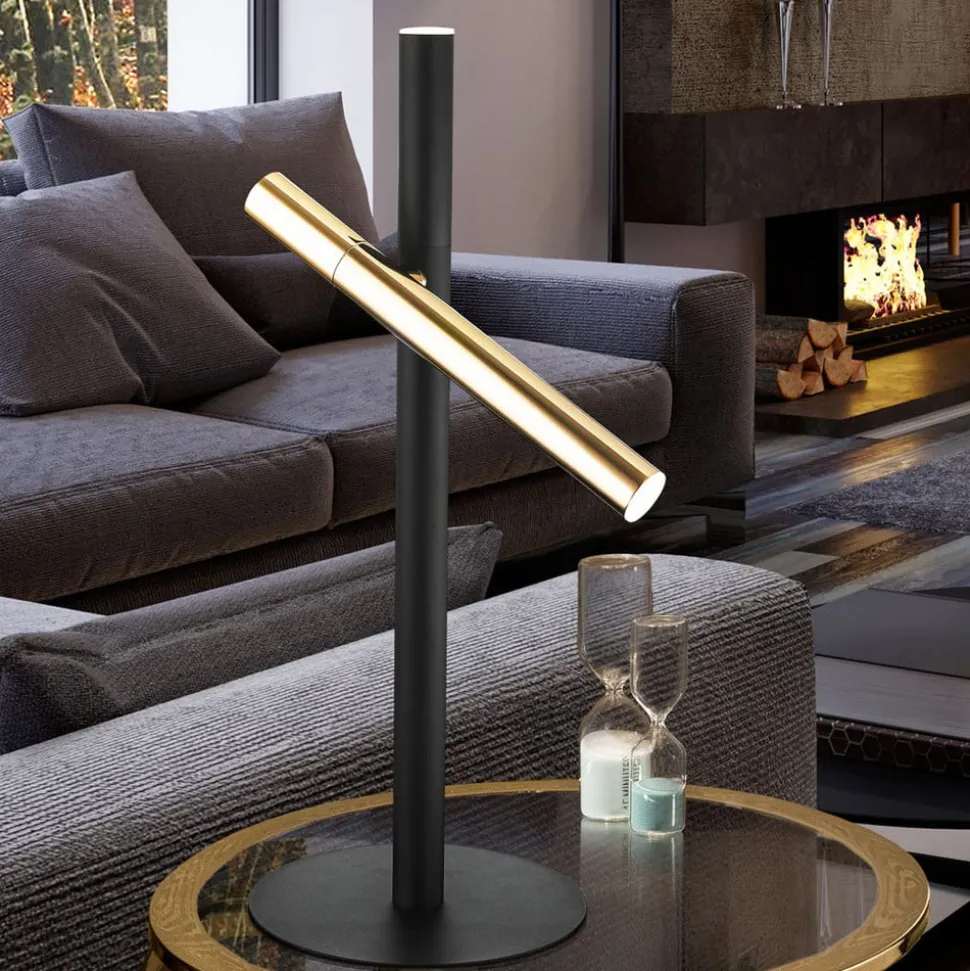 LED tafellamp Varas, zwart/goud, 2-lamps uitvoering