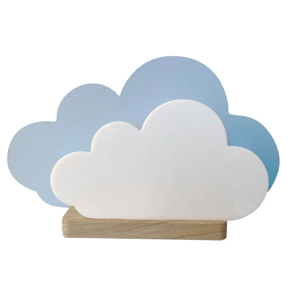 LED tafellamp Wölkchen, blauw, hout, 3000 K, dimbaar