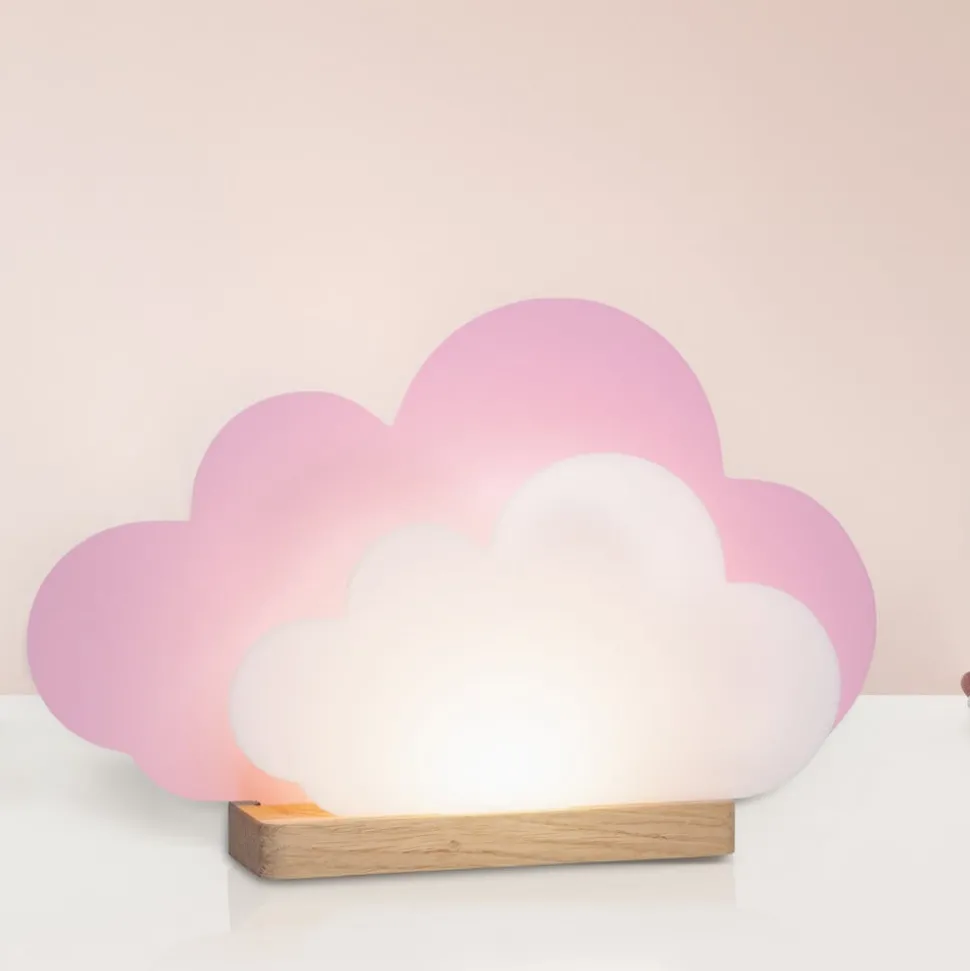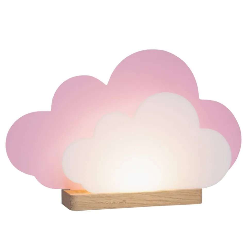 LED tafellamp Wölkchen, roze, hout, 3000 K, dimbaar