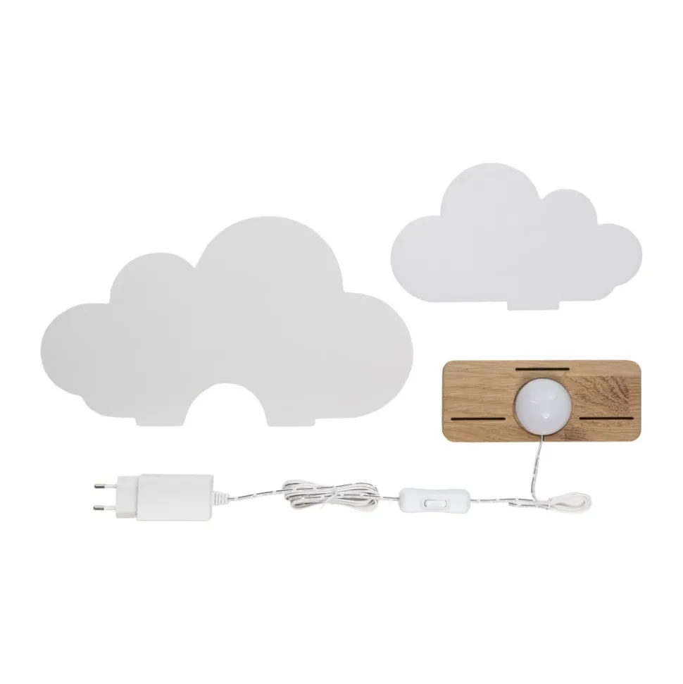 LED tafellamp Wölkchen, wit, hout, 3000 K, dimbaar