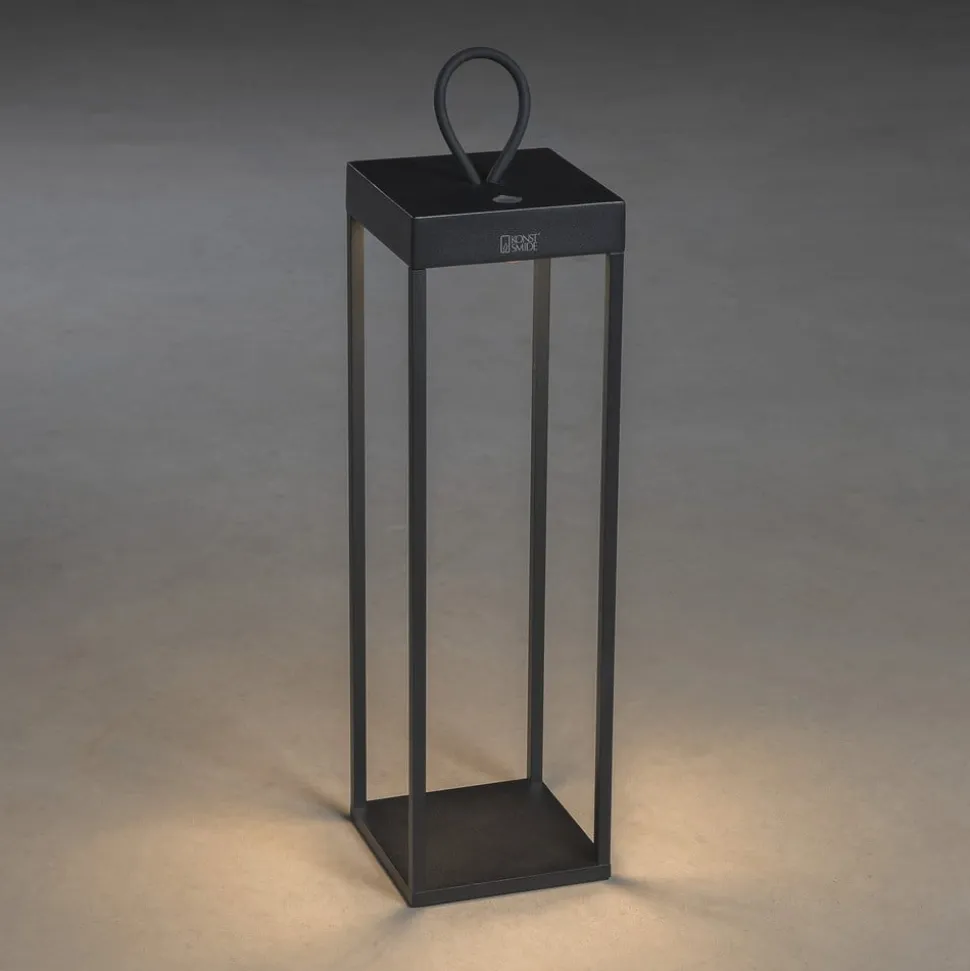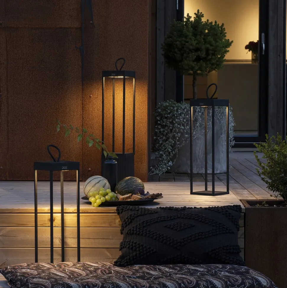 Deze decoratieve armatuur voor buiten overtuigt door mobiliteit en flexibele lichtinstellingen. Visueel komt Ravello overeen met een moderne lantaarn in open, zwarte kubusvorm, gemaakt van aluminium. De LED’s zijn geïntegreerd in het bovenste gedeelte en verlichten de binnenkant van de armatuur. De armatuur wordt bediend via een aanraakschakelaar waarmee zij niet alleen kan worden in- en uitgeschakeld, maar ook traploos kan worden gedimd van 100 tot 5% en de kleurtemperatuur kan worden gewijzigd tussen 3.000 en 2.700 K. Dankzij de geïntegreerde oplaadbare batterij kan de terrasverlichting ook zonder stroombron worden gebruikt, terwijl de grote rubberen lus u uitnodigt de terrasverlichting aan te passen om steeds nieuwe lichtaccenten te creëren.
