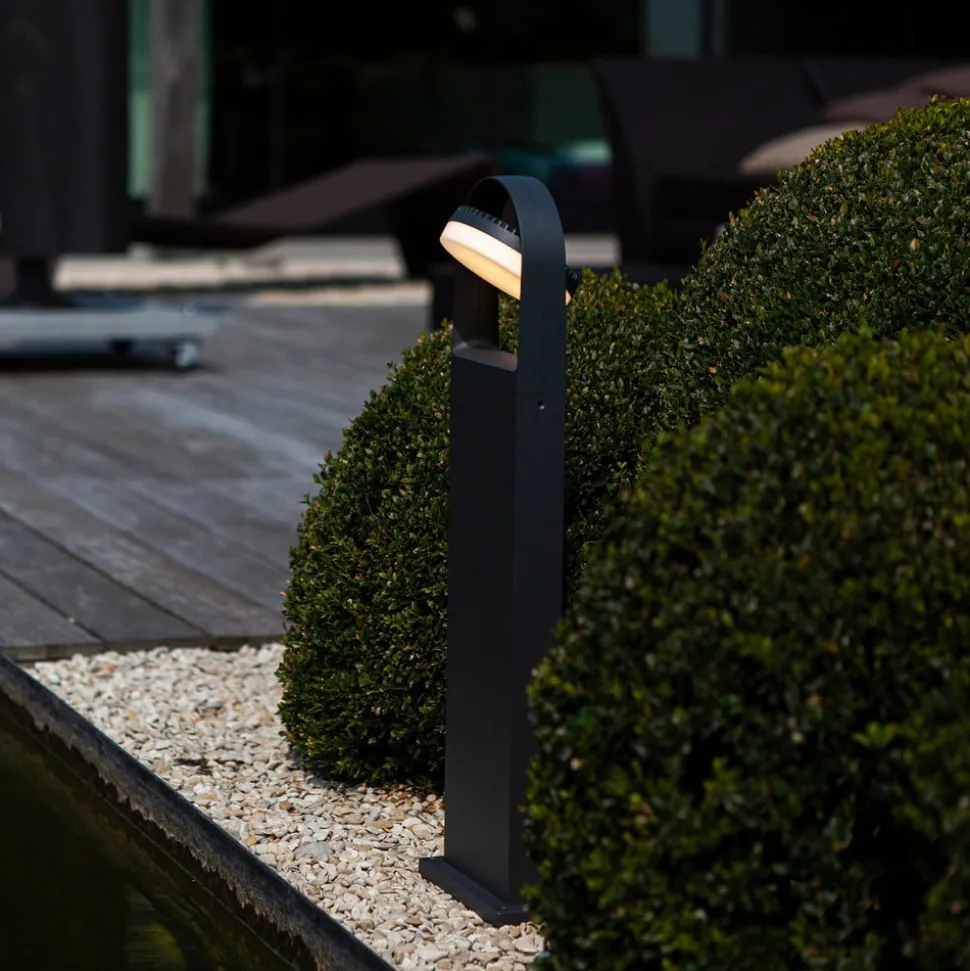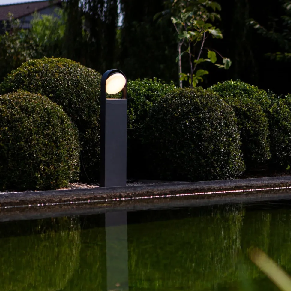Zowel de halfronde kop als de kubusvormige voet en het onderstuk van de Fele padverlichting zijn gemaakt van gegoten aluminium. Als verlichting dient een ronde schijf, die aan één zijde is voorzien van een witte afdekking die de warmwitte LED-verlichting beschermt en voor homogeen licht zorgt. De schijf is tot 320° zwenkbaar en kan zo voor een individuele verlichting zorgen.