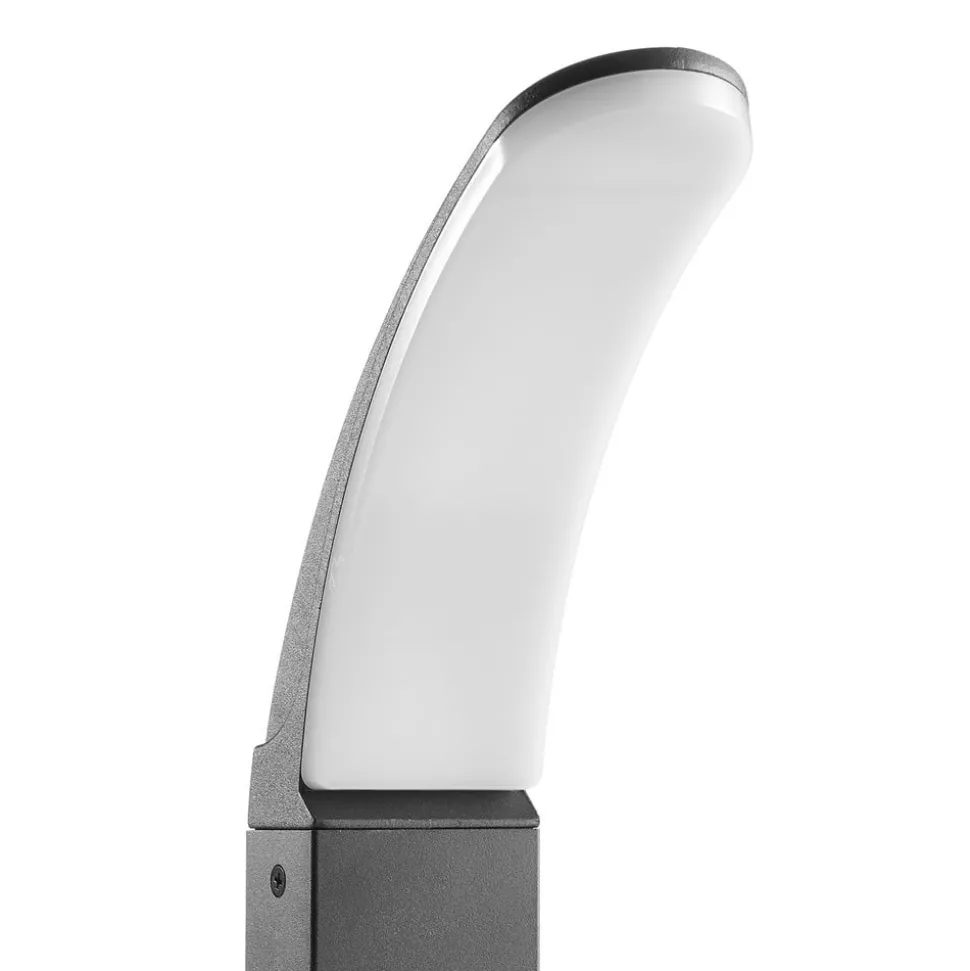 Precies daar waar licht nodig is op paden, terrassen en opritten, schijnt de Fiumicino LED-padarmatuur, namelijk onder een grote hoek naar voren en naar beneden op de grond. Dit wordt bereikt door de gebogen armatuurkop van de zwarte padlamp. Er is een krachtige LED-printplaat in geïnstalleerd, die wordt afgedekt door een gesatineerde diffusor, zodat het licht gelijkmatig wordt verspreid. De behuizing en het frame van de padlamp zijn gemaakt van spuitgegoten aluminium en gepoedercoat in zwart met een lichte textuur.