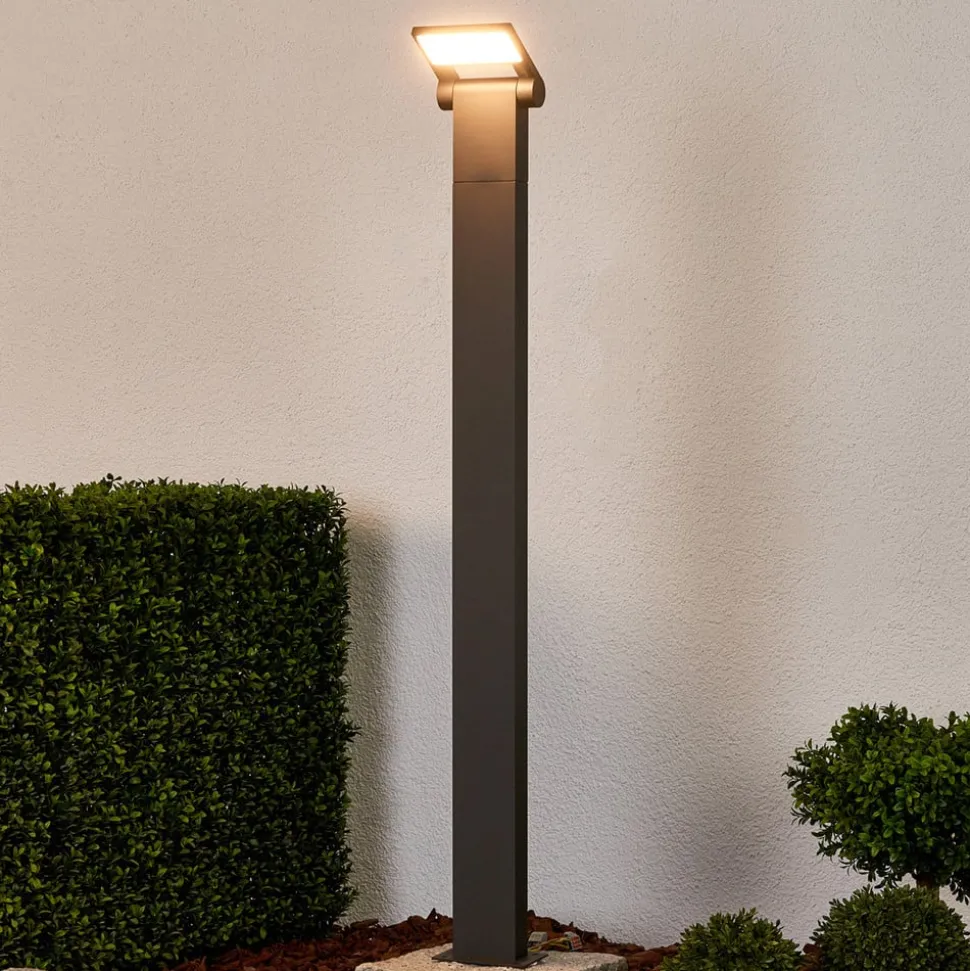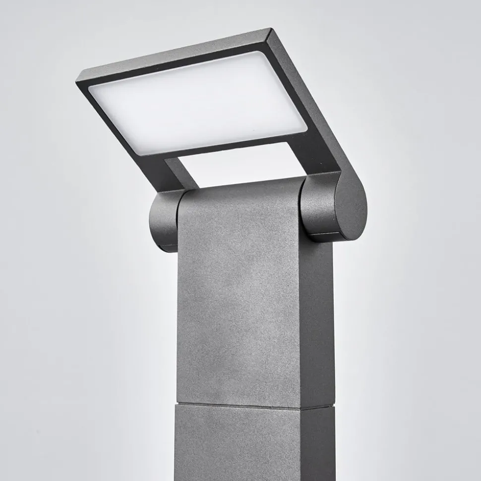 Grafietgrijze LED tuinpadverlichting Marius – winnaar van 2 design awards Deze LED tuinpadverlichting is ideaal voor het verlichten van tuinpaden en opritten, vooral als deze in een eigentijdse stijl zijn ontworpen of deel uitmaken van een modern gebouw. Om een betere positionering van de lamp mogelijk te maken, is de lampenkop niet star, maar flexibel bevestigd aan het frame met behulp van een scharnier. Bovendien is de hoogwaardige LED tuinpadverlichting Marius bekroond met twee prijzen: de German Design Award Special 2018 en de Reddot Award 2017 (winnaar lichtontwerp).