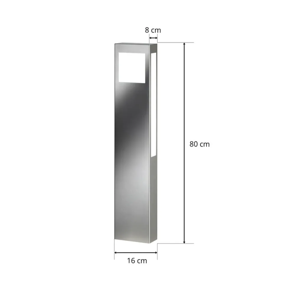 Paulo LED padverlichting met twee zijramen en twee voorramen Paulo is een rechthoekige padverlichting van roestvrij staal met symmetrische lichtvensters aan alle vier de zijden (2 langwerpige zijramen, 2 hoekige voorramen), die zorgt voor een aangename helderheid en dus voor meer veiligheid op opritten, bij ingangen of op terrassen. Hoogwaardige materialen en hun gekwalificeerde en zorgvuldige afwerking kenmerken de buitenlampen van deze fabrikant, die allemaal zijn uitgerust met de modernste technologie.