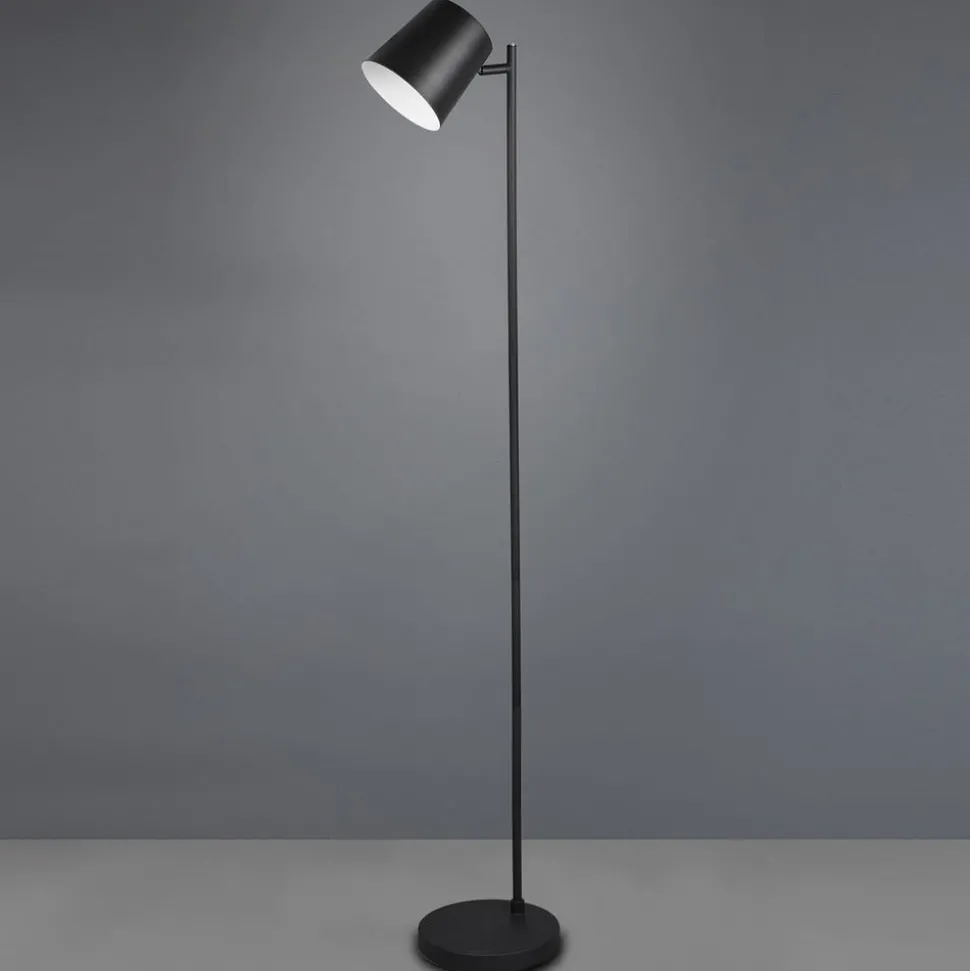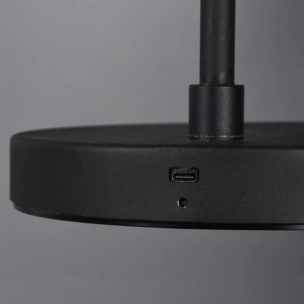 Een sierlijke LED-vloerlamp met beweegbare, halfronde lampenkap, waarvan de binnenkant in het wit is gehouden -Blake is geschikt voor tal van nissen en hoeken, omdat het onder meubels kan worden geschoven dankzij de platte voet en beheert zonder kabels, omdat het een geïntegreerde oplaadbare batterij heeft. Aan de bovenzijde van de stang bevindt zich een tastdimmer, waarmee de helderheid moeiteloos in vier niveaus kan worden aangepast.