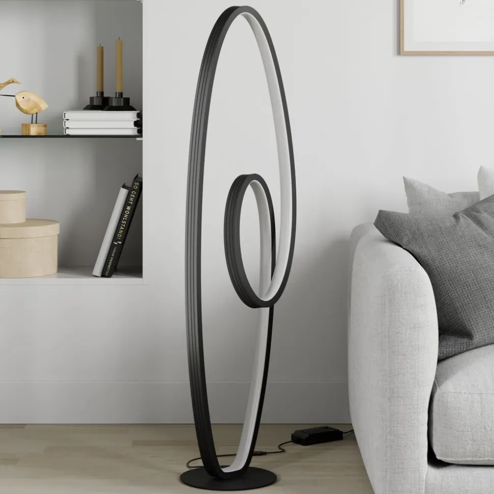 Dimbare, gebogen LED vloerlamp Bronwyn De Bronwyn LED vloerlamp met zijn zijlus ziet eruit als iets dat rechtstreeks uit een pretpark komt. Je kunt hem ook vergelijken met een kunstobject. Deze lamp zal zeker niet onopgemerkt blijven in een moderne woonkamer. Het licht kan ook traploos worden gedimd met de schakelaar.