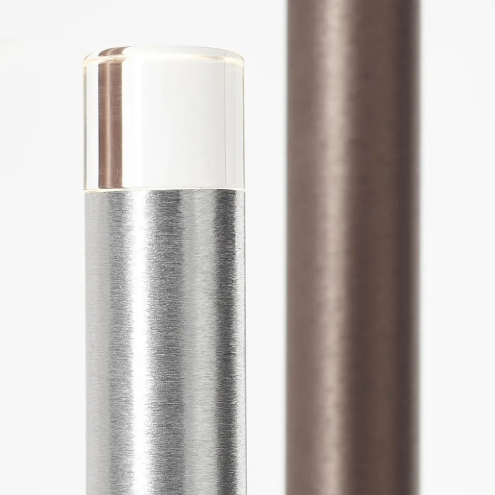 LED vloerlamp Cembalo heeft een zeer modern en stijlvol design. Met zijn warmwitte licht en natuurlijke kleuren in de afwerking creëert hij een gezellige en warme sfeer. Vijf metalen zuilen zijn op een ronde standaard geplaatst en zijn met een acryl diffuser, elk met een LED lamp bekroond. De verschillende hoogtes van de zuilen zorgen voor een unieke verlichting die harmonieuze accenten in de slaapkamer en woonkamer brengt.