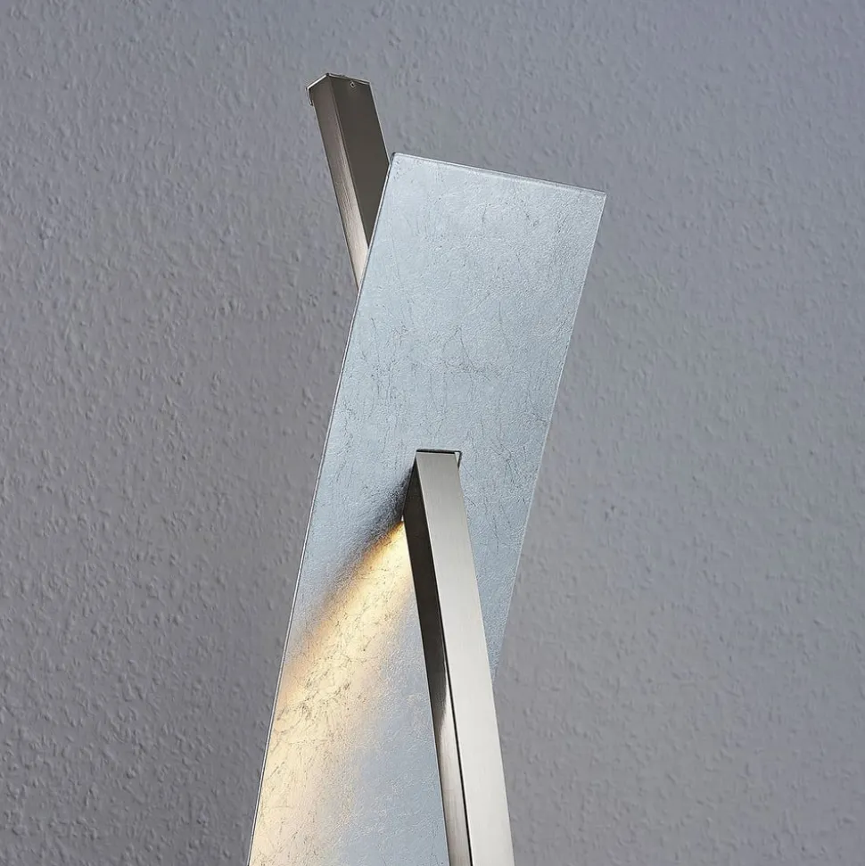 Zilveren kleurenharmonie: de LED vloerlamp Marija zorgt voor elegante verlichting De slanke Marija vloerlamp is een goede keuze voor iedereen die houdt van een moderne woonstijl. De ronde voet en de gebogen metalen kap zijn plat en zilverkleurig, net als het lichtelement. Beide zijn in tegengestelde richtingen gebogen, waardoor de kamer een aangename diepte krijgt. Met deze combinatie van kleur en vorm onderstreept de LED vloerlamp Marija een geraffineerde sfeer en maakt ze indruk, zelfs als ze niet is ingeschakeld. De hoogwaardige uitstraling is natuurlijk bijzonder effectief in de schemering en ’s avonds laat. Het licht kan in drie fasen worden gedimd.