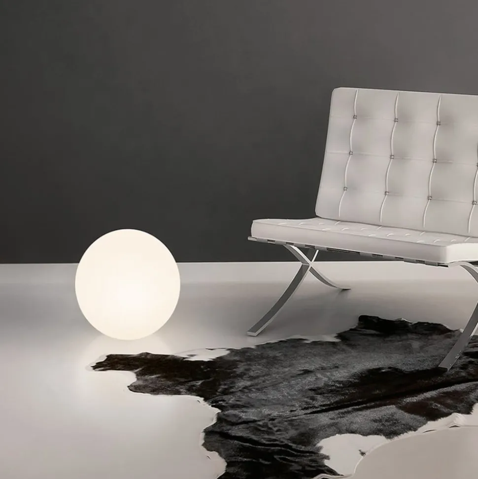 LED vloerlamp Oh! – Bolvormige lamp voor buiten, E27 De magische perfectie van de cirkel combineert met de natuurlijkheid van het licht om een elegante lichtbol te creëren. Oh! is een aantrekkelijke vloerlamp met diffuser en E27 fitting, gemaakt van wit polyethyleen met behulp van het rotatiegietproces en met een glad, gelijkmatig oppervlak. Een E27 fitting is geïnstalleerd in de diffuser, die kan worden uitgerust met een lamp naar keuze. ALS! is perfect als enkel armatuur of geïnstalleerd in groepen. Het hoge niveau van bescherming tegen stof en waterspatten maakt het armatuur ook geschikt voor buitenruimtes zoals overdekte terrassen, tuinhuisjes of tuinen.