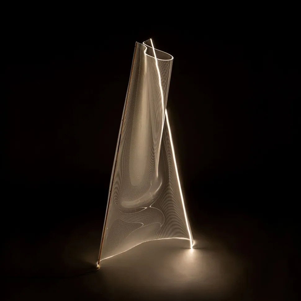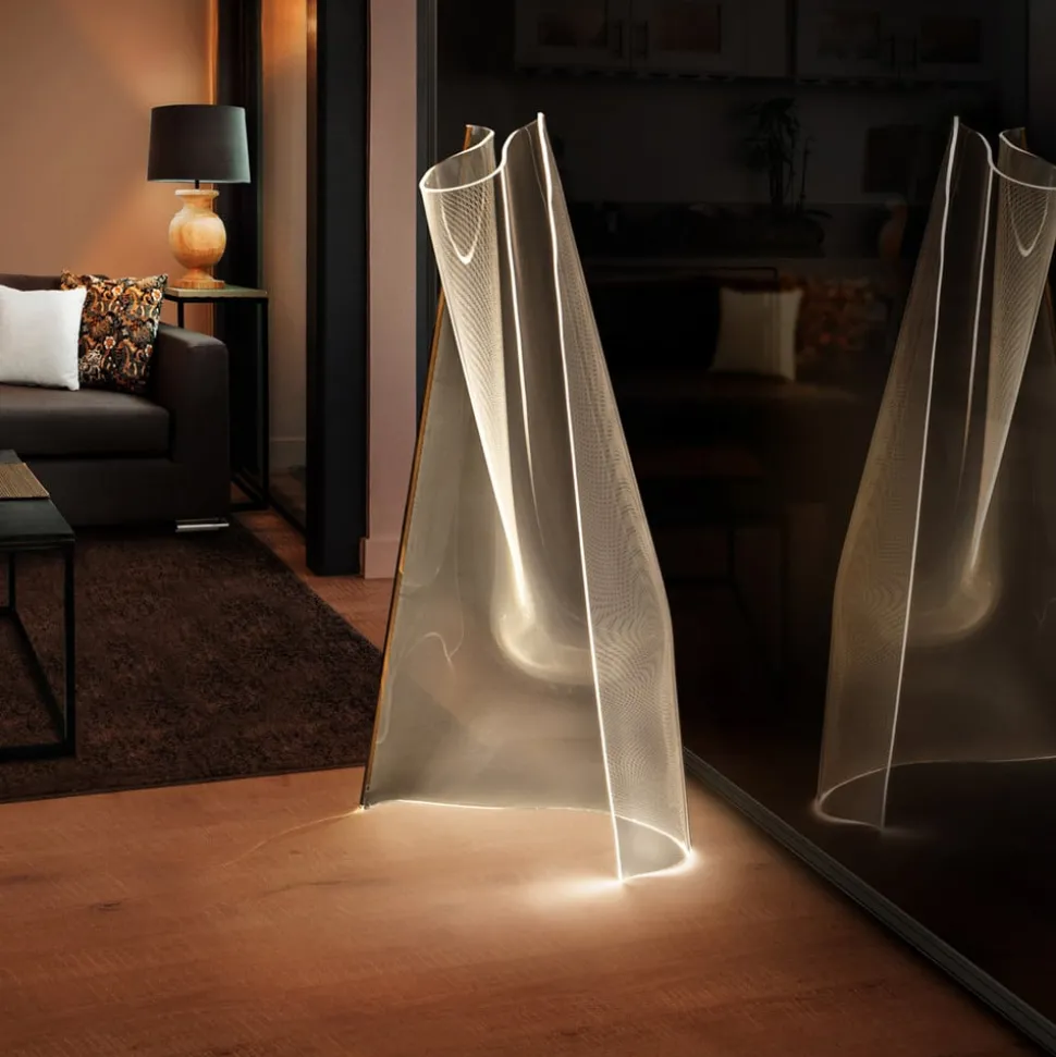 LED vloerlamp Velos, roségoud, organisch gevormd