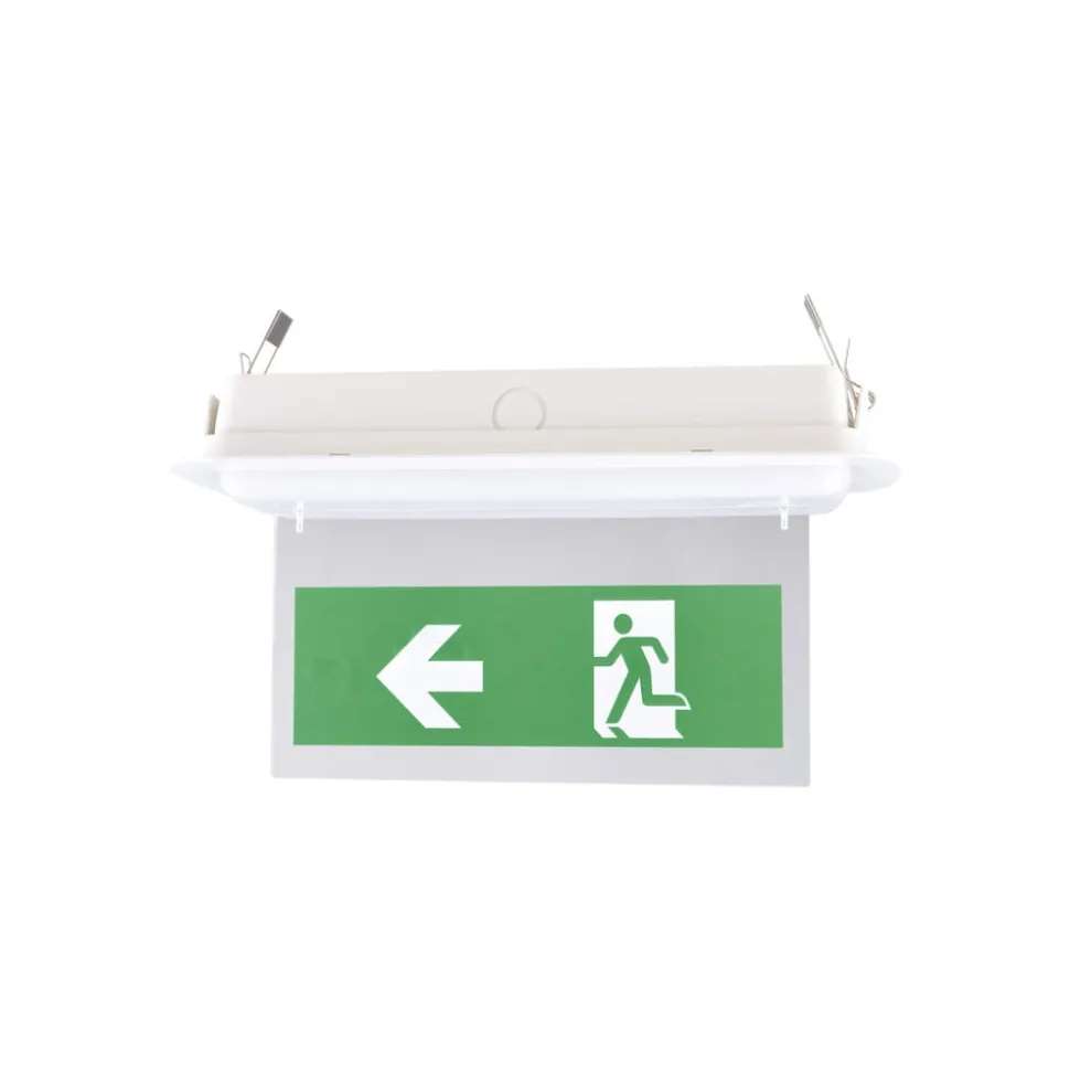 LED vluchtweglamp Uhlbach van Ledino voor inbouw- en opbouwmontage, 4.000 K De LED vluchtweg-/noodlamp Uhlbach is geschikt voor inbouw- en opbouwmontage, een geschikt montageframe wordt meegeleverd, evenals een selectie bewegwijzering (plakfolies). Er wordt ook een vervangbare lithiumbatterij van 3,7 V/1,5 Ah meegeleverd. De noodverlichting brandt alleen in de noodlichtmodus (> 3 uur), maar heeft nog steeds een continue stroomvoorziening nodig. Hij is uitgerust met een stand-bymodus en er kan een permanente lichtmodus worden ingesteld. Het zicht is 24 m. Kan worden gebruikt als: – Noodverlichting voor plafond en wand (opbouw) – Vluchtwegverlichting met plakfolie (opbouw) – Vluchtwegverlichting met prikbord (plafondmontage) – Bedrijfstijd: 180 minuten – Slagvastheid IK05