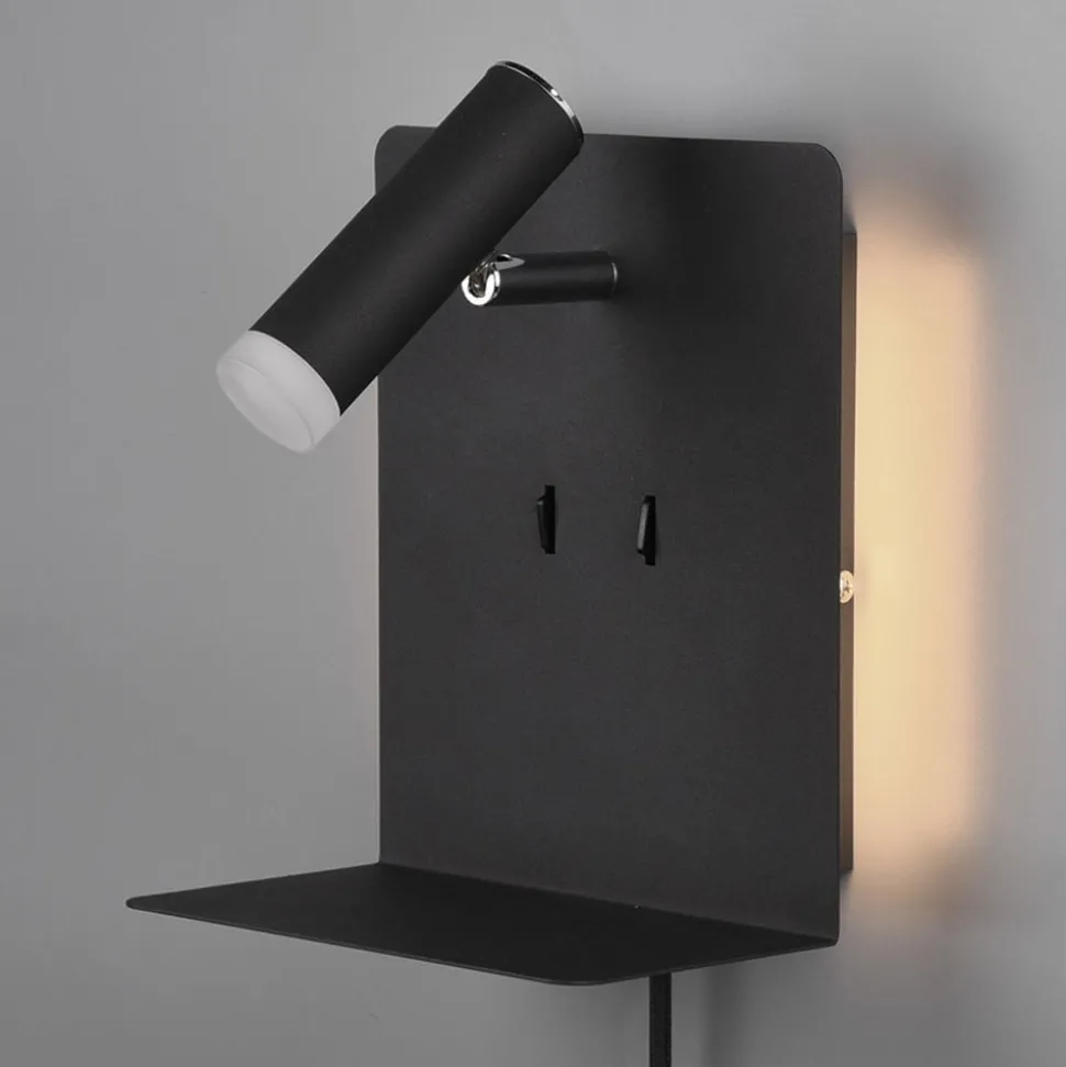 Matzwarte LED wandlamp Element met schap Die matzwarte LED wandlamp Element heeft veel praktische functies te bieden en is ideaal voor gebruik in de slaapkamer. Ze straalt zowel direct licht uit een LED die in de verstelbare spot is ingebouwd als indirect licht uit twee LED’s aan de achterkant van het armatuur, waarbij beide lichtbronnen afzonderlijk kunnen worden geschakeld. Die is niet alleen uitgerust met een schap, maar ook met een Porter zodat bijvoorbeeld een Handy tegelijkertijd op het armatuur kan worden opgeborgen en opgeladen. De LED wandlamp is uitgerust met Flex Connect. Het kan worden bediend vanuit een stopcontact met behulp van de kabel met stekker, maar kan ook direct op een wandaansluiting worden gemonteerd. In dat geval is de kabel afneembaar.