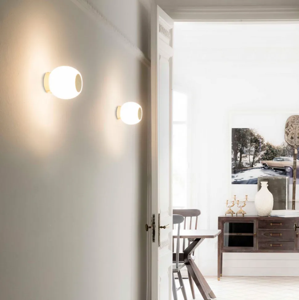 Een hoogwaardige glazen kap en warme, gouden metalen elementen – deze twee componenten vormen de fraai vormgegeven LED-wandlamp Moy. Het is zeer decoratief en zorgt met zijn geïntegreerde LED’s ook voor heerlijk warm, verblindingsvrij en gelijkmatig stralend licht. Het snijdt niet alleen een goed figuur als elegante lichtbron, maar is ook overtuigend als decoratief object in helder licht. Dankzij de beschermingsklasse IP44 kan Moy ook zonder problemen in de badkamer worden geïnstalleerd.