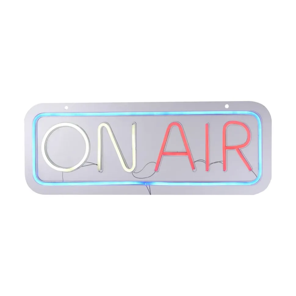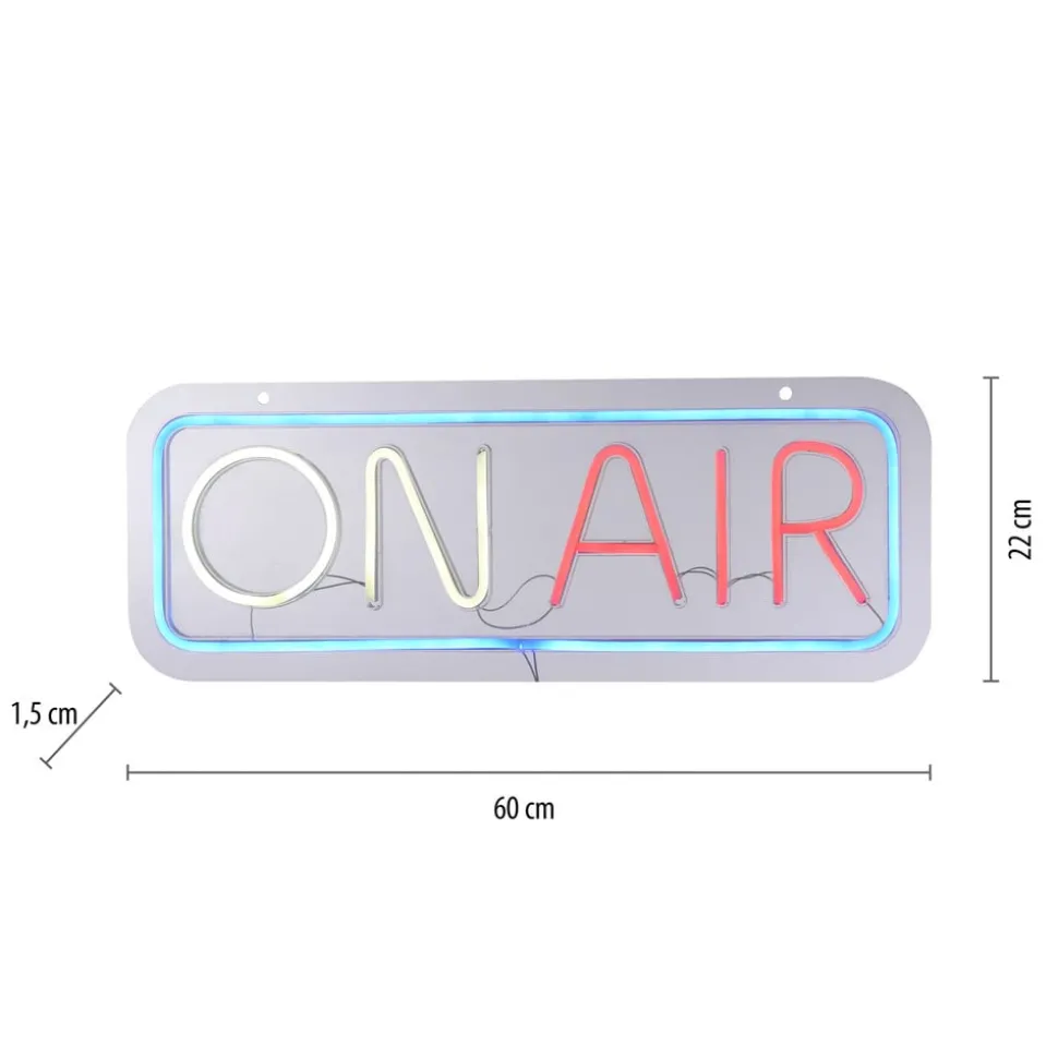 LED wandlamp Neon On Air, USB De LED wandlamp Neon On Air is gemaakt van kunststof en laat op een decoratieve manier zien dat de show in volle gang is. Ook een populair decoratief element voor streamers. Een LED-module is standaard geïntegreerd. Deze moderne wandlamp wordt bediend via USB. Een USB-kabel met USB-A stekker (zonder voeding) en schakelaar (aan/uit) is vast geïnstalleerd.