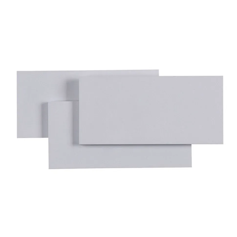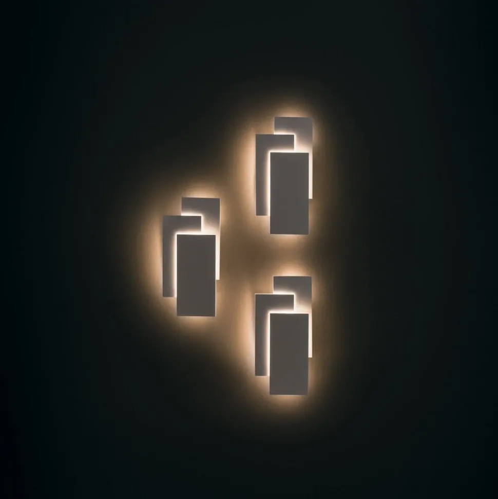 Het moderne design van de Trame LED-wandlamp overtuigt op het eerste gezicht. Drie metalen rechthoeken zijn elegant boven elkaar gerangschikt en hebben energiezuinige LED’s aan de achterzijde, die zorgen voor een aangenaam omgevingslicht als het licht aan is.
