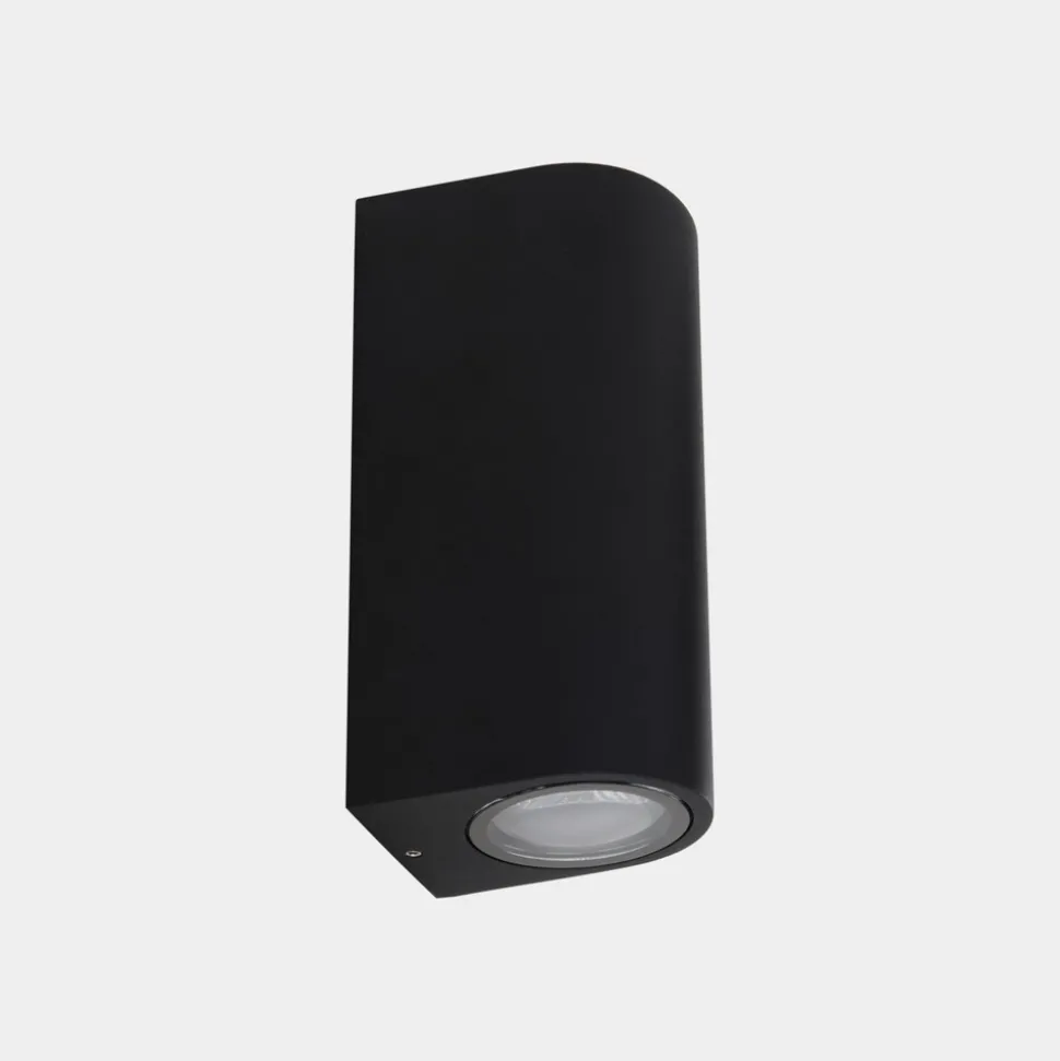 Eko Dubbele LED buiten wandlamp met twee lichtuitgangen Deze hoogwaardige verlichtingsoplossing combineert een elegant ontwerp met de robuustheid van aluminium en een beschermingsgraad van IP66, waardoor ze ideaal is voor gebruik in veeleisende buitenruimtes. Het licht van de gebruikte lamp (niet inbegrepen) spot zowel naar boven als naar beneden – Extern dimbaar
