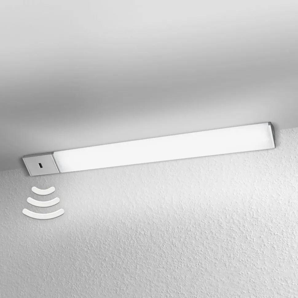 Onderkastverlichting Cabinet LED Corner in wit Die LED onderkastverlichting Cabinet Corner kan perfect in de hoek van een kast worden geïnstalleerd. De eenvoudige aluminium behuizing past onopvallend in alle kasten en planken. De ingebouwde infraroodsensor herkent veegbewegingen voor de lamp, waarmee de lamp kan worden in- en uitgeschakeld. De lamp heeft ook een traploze dimmer, die wordt bereikt door de bewegingsmelder af te dekken. De lamp heeft een LED lamp en wordt aangesloten op het lichtnet met een kabel. De langwerpige vorm creëert een bijzonder gelijkmatige lichtspreiding in de kast of op het schap – Eenvoudige en snelle installatie met plakstrips of schroeven Opmerking: De sensor moet tussen de voeding en de eerste lamp worden geplaatst. Die nieuwe LEDVANCE producten, voorheen bekend onder de merknaam OSRAM, combineren de hoogste kwaliteitsnormen met een modieus design.