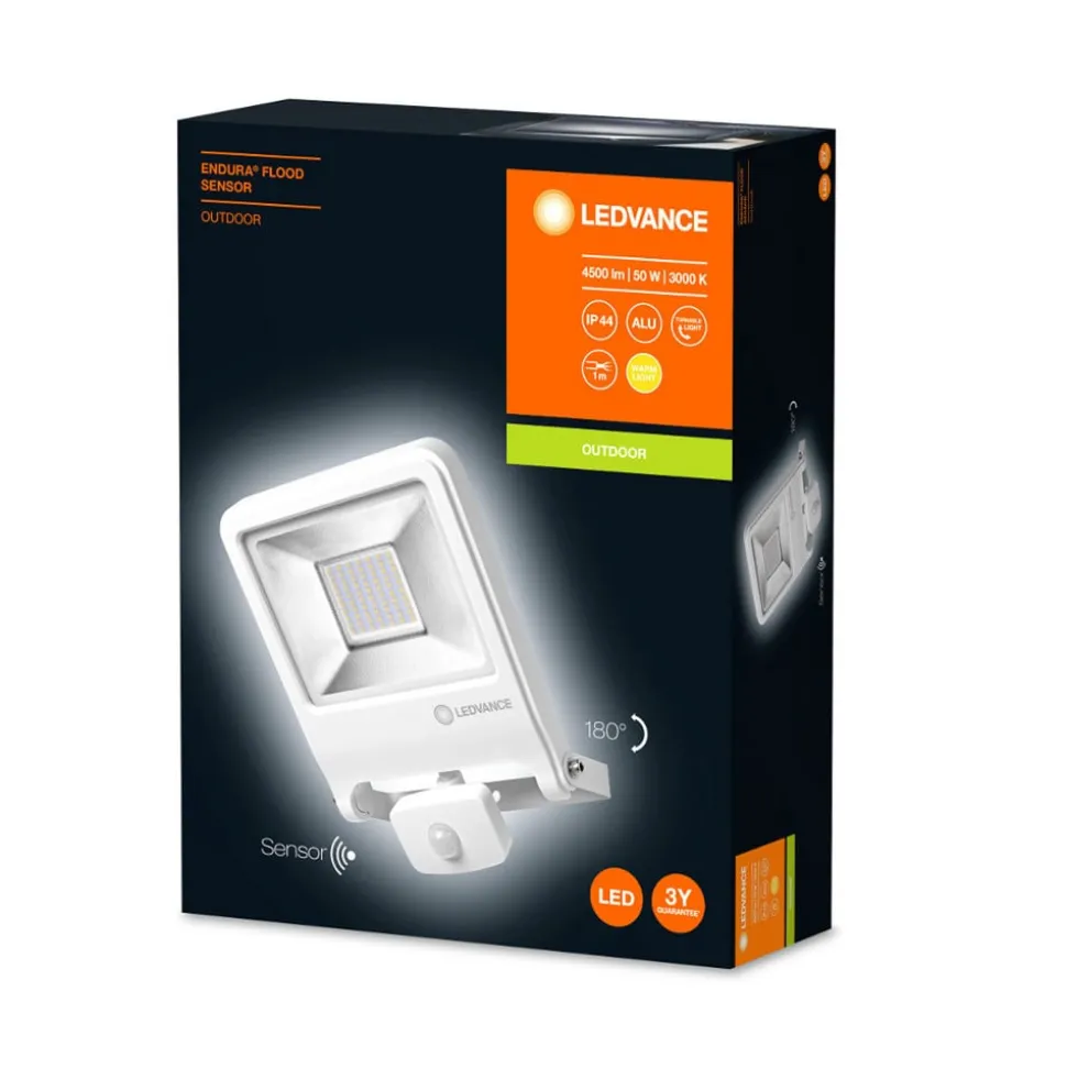 De Endura Flood LED-buitenwandschijnwerper is uitgerust met warmwitte LED’s. De witte aluminium behuizing heeft een robuuste afwerking. Zelfs omgevingstemperaturen van -10 °C tot 40 °C kunnen de LED-spot tijdens de werking niet beschadigen. Dankzij de IP44-beschermingsgraad is hij ook stofdicht en beschermd tegen opspattend water. De toepassingsgebieden voor de heldere schijnwerper zijn divers. Typische buitentoepassingen zijn onder meer de verlichting van parkeerterreinen en opritten, garageverlichting of als vervanging voor schijnwerpers met halogeenlampen. Als de LED-schijnwerper voor buiten wordt gebruikt in plaats van een halogeenlamp, is een energiebesparing tot 80 % mogelijk.