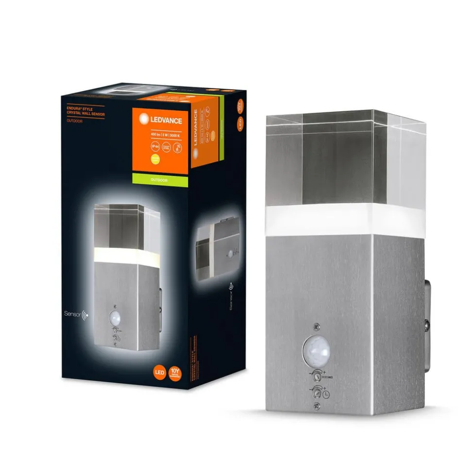 Modern, eigentijds en functioneel, de Endura Style Crystal LED buitenwandlamp verlicht de omgeving met warm wit licht. De geïntegreerde passieve infrarood bewegingssensor schakelt het licht aan wanneer beweging wordt waargenomen.