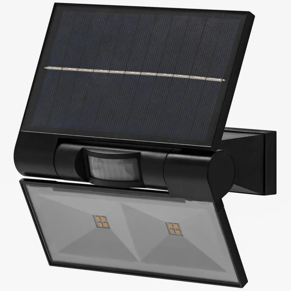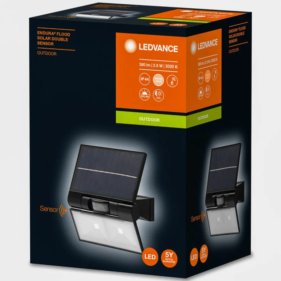 Futuristisch ontworpen LED-buitenwandlamp Endura Style Flood Solar met daglichtsensor en bewegingsmelder