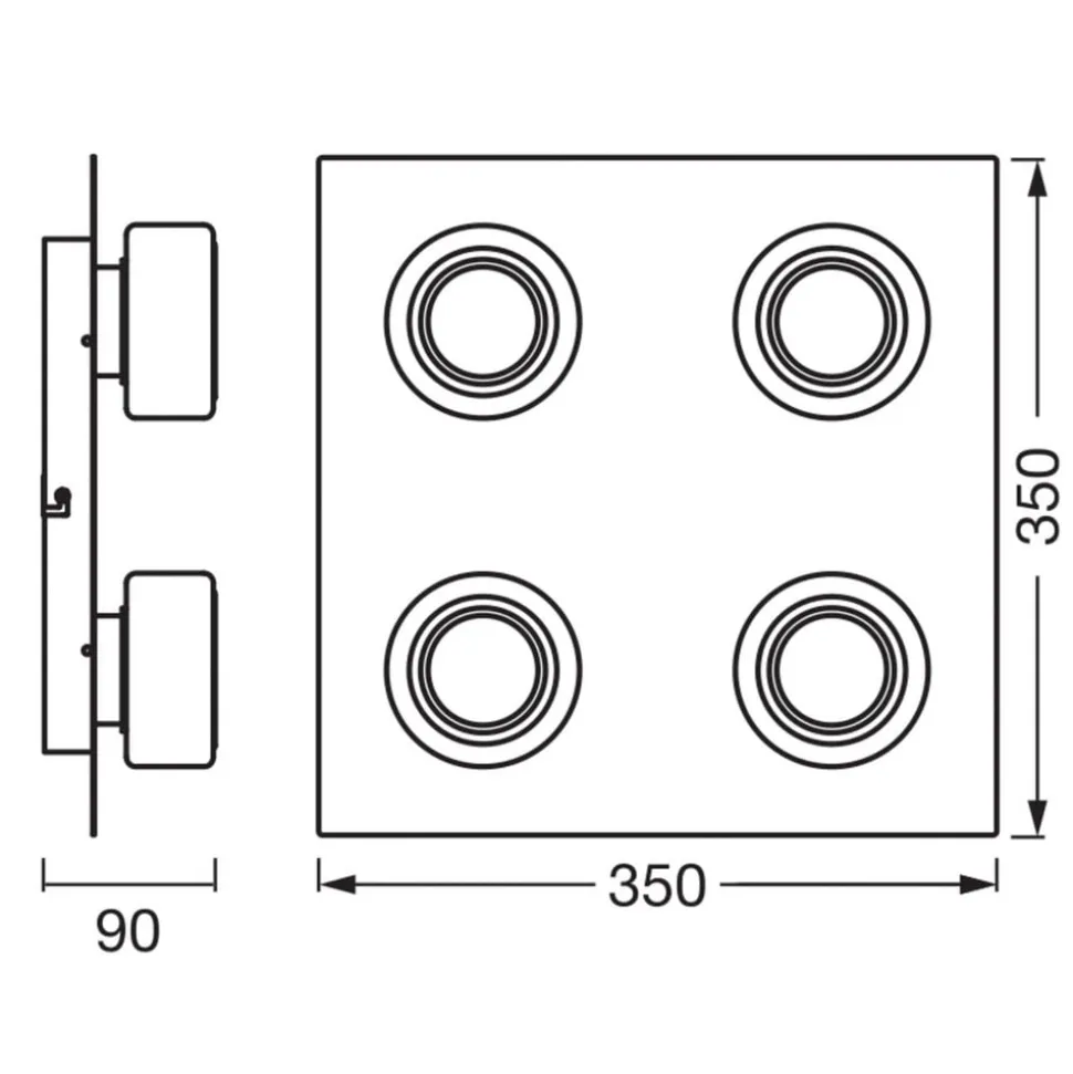 LEDVANCE LED plafondlamp Orbis Flame, chroom, 4-lamps, IP44