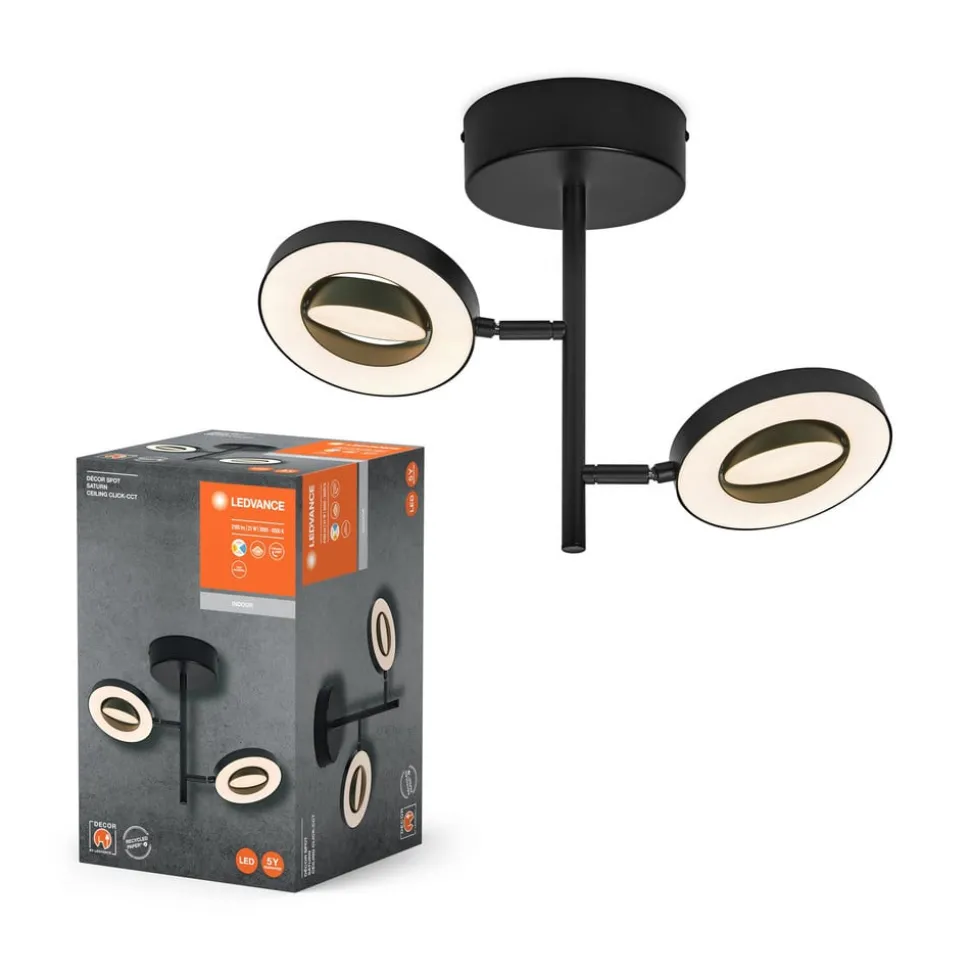 LEDVANCE LED plafondspot Saturnus, 2-lamps CCT, hoog, zwart