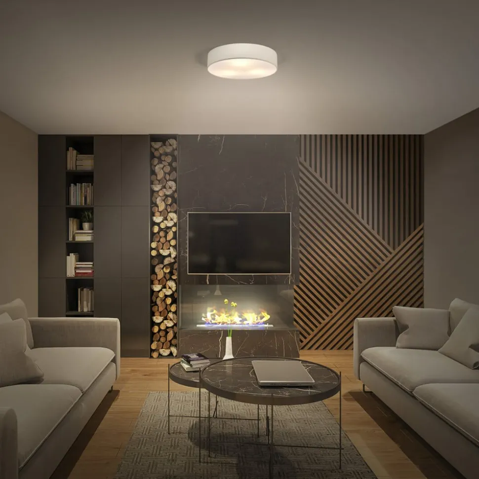 Plafondlamp Orbis Paris met textielen kap en PVC diffuser De plafondlamp Orbis Paris verspreidt een homogeen en zeer aangenaam licht in de ruimte dankzij de textielen kap en de PVC diffuser die erin zit. Ze past net zo goed in de woonkamer als in gangen of de slaapkamer en kan worden uitgerust met verlichtingsmiddelen naar keuze (max. 15 W LED), zodat de lichtkleur en de helderheid van het armatuur kunnen worden geselecteerd volgens persoonlijke voorkeur of de plaats waar het armatuur wordt gebruikt, afhankelijk van de keuze van de gebruikte verlichtingsmiddelen. Dimmen met een externe dimmer is ook mogelijk, op voorwaarde dat dimbare lichtbronnen worden geselecteerd