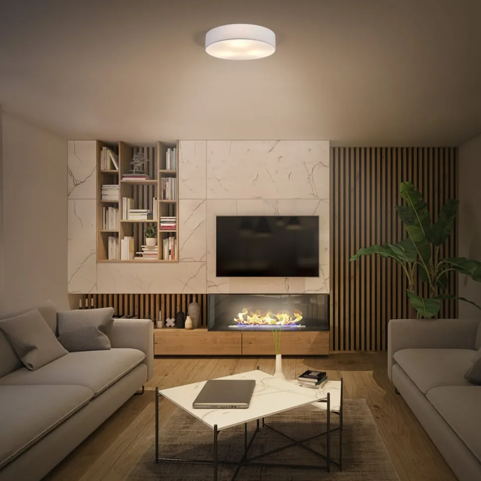 Plafondlamp Orbis Paris met textielen kap en PVC diffuser De plafondlamp Orbis Paris verspreidt een homogeen en zeer aangenaam licht in de ruimte dankzij de textielen kap en de PVC diffuser die erin zit. Ze past net zo goed in de woonkamer als in gangen of de slaapkamer en kan worden uitgerust met verlichtingsmiddelen naar keuze (max. 15 W LED), zodat de lichtkleur en de helderheid van het armatuur kunnen worden geselecteerd volgens persoonlijke voorkeur of de plaats waar het armatuur wordt gebruikt, afhankelijk van de keuze van de gebruikte verlichtingsmiddelen. Dimmen met een externe dimmer is ook mogelijk, op voorwaarde dat dimbare lichtbronnen worden geselecteerd