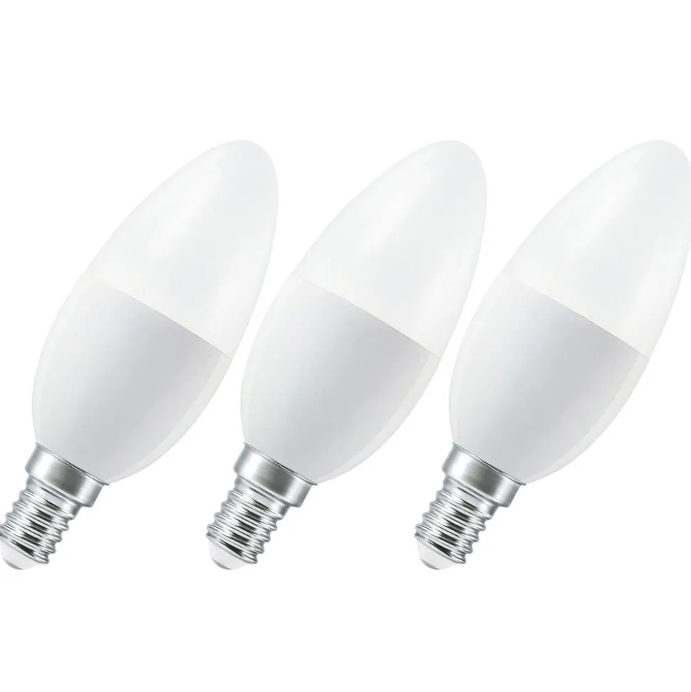 Set van 3 LEDVANCE SMART E14 LED kaarslampen B40, 5 W per stuk, 2.700 K, slim schakelbaar en dimbaar
