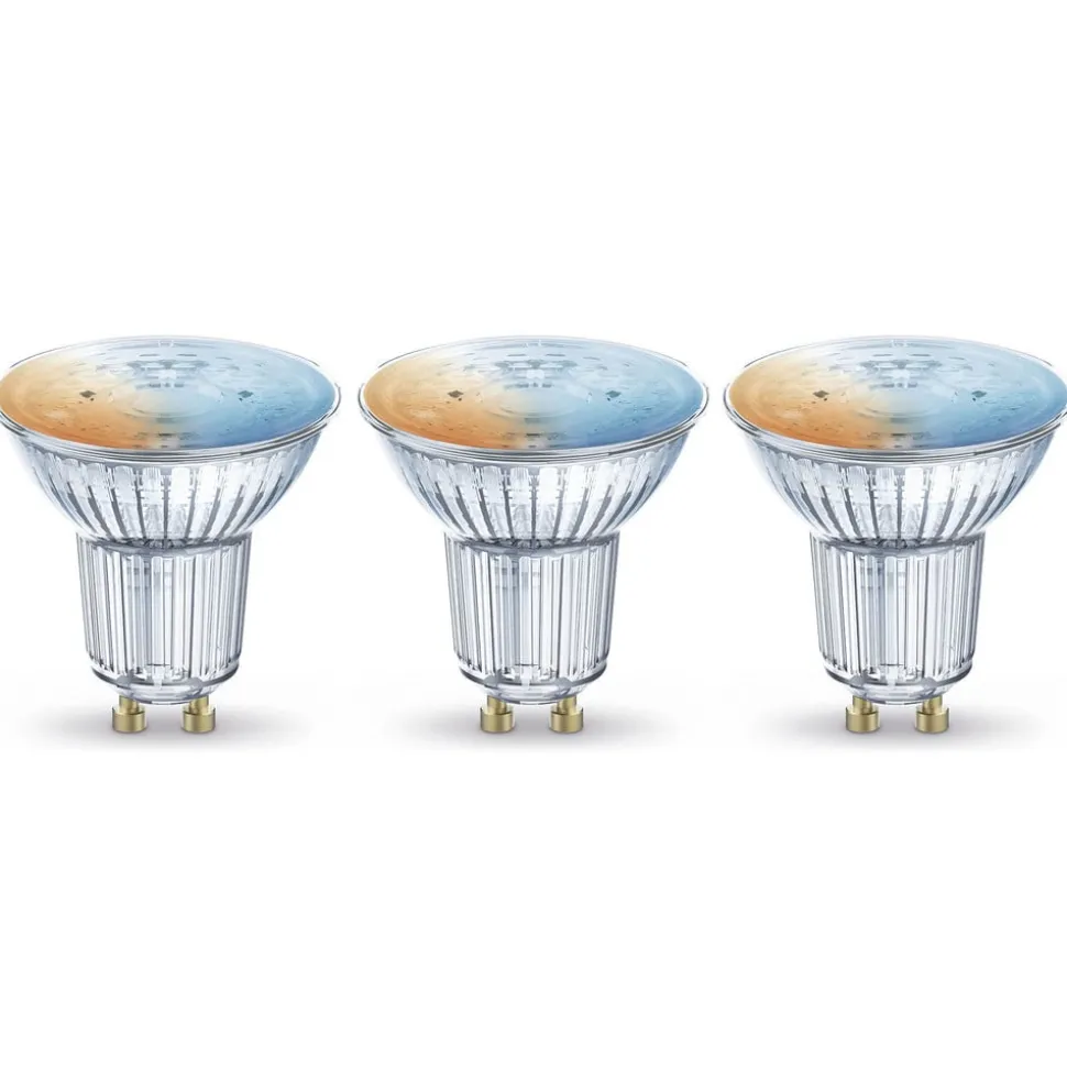 In een set van 3 – GU10 LED reflector PAR16 LEDVANCE SMART met elk 4,9 W, slim schakelbaar en dimbaar, CCT