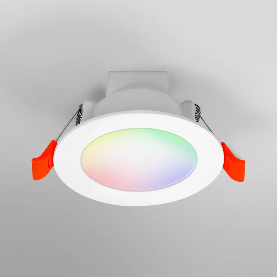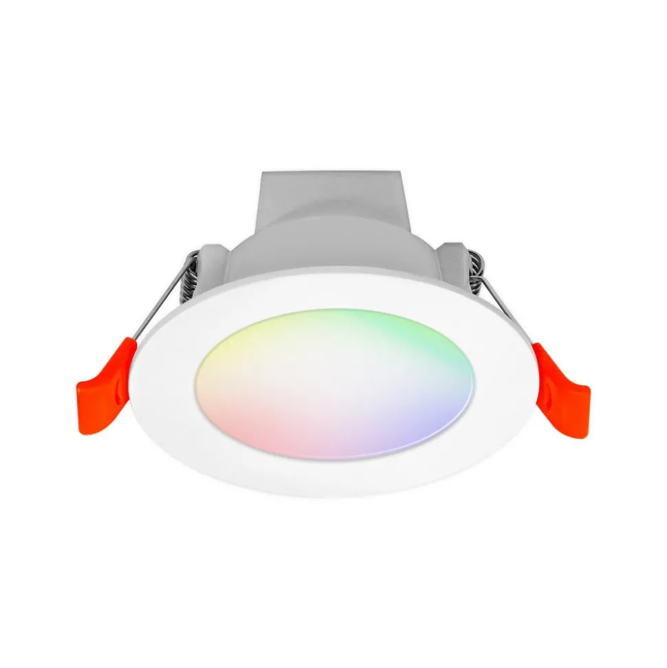 Spot LED inbouwlamp met LEDVANCE SMART+ WiFi-technologie en RGB kleurverandering De Spot LED inbouwlamp is gemaakt van kunststof en wordt geleverd in wit, waardoor ze naadloos past in verschillende inrichtingsstijlen en woonomgevingen. De lamp is geschikt voor het verlichten van bijvoorbeeld gangen, hallen of keukens. De helderheid kan worden aangepast via een app of spraakopdracht, de lichttemperatuur kan worden gevarieerd van warm tot daglicht en de RGB kleurverandering kan worden geregeld. Zo kunnen de verlichtingsomstandigheden op elk moment worden aangepast aan individuele vereisten. Integratie vindt plaats met LEDVANCE SMART+ WiFi-technologie via WLAN – Bedienbaar via LEDVANCE SMART+ WiFi-app (met ten minste Android 4.4 of iOS 9.0) gratis; maakt presets en automatisering mogelijk – Spraakbesturing via Google Assistant of Amazon Alexa mogelijk (compatibel smart home-systeem vereist) – Lichttemperatuur instelbaar: 3.000 K – 6.500 K – RGB kleurverandering – Dimbaar – Netwerkprotocol: WiFi