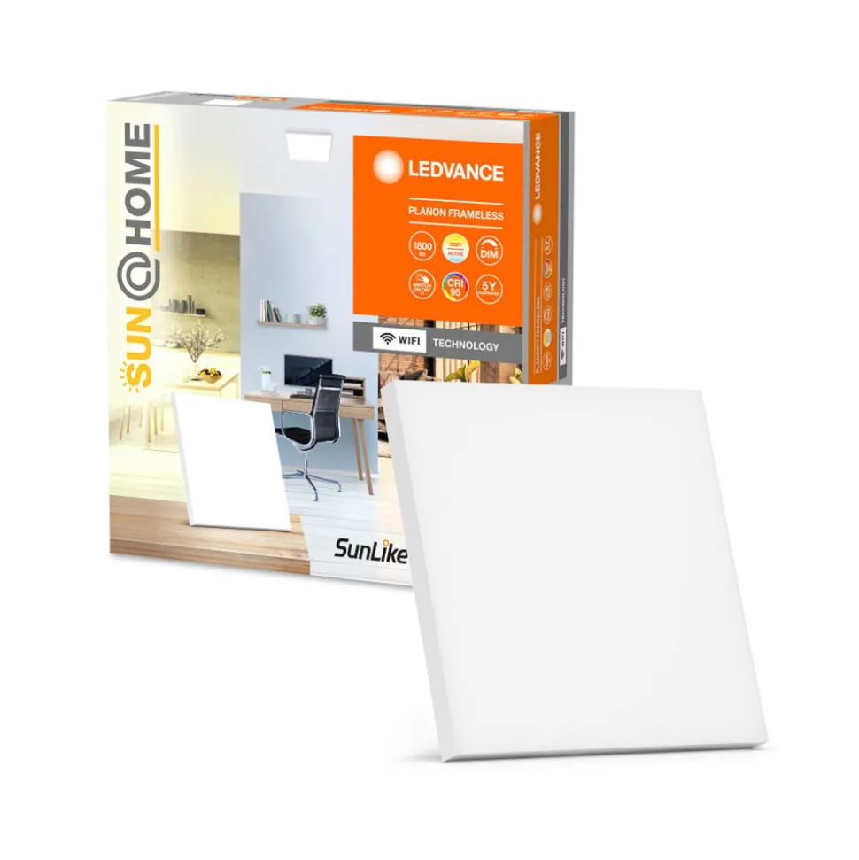 De SUN @ Home Planon Frameless LED plafondlamp kan dankzij haar eenvoudige vorm prachtig worden toegepast in verschillende woonruimtes, bijvoorbeeld in de studeerkamer of de woonkamer. De armatuur overtuigt door haar hoge kleurweergave-index (CRI 95), bovendien hebben de geïnstalleerde LED’s een gereduceerde blauwlichtcomponent. Dit verbetert bijvoorbeeld de concentratie, de slaapintensiteit en de alertheid overdag. Bovendien wordt de lucht in de kamer vrijgemaakt van kwalijke geurtjes en huishoudbacteriën. Kleurtemperatuur en helderheid kunnen gemakkelijk worden geregeld via een app of stemcommando. De integratie gebeurt met de LEDVANCE SMART+ WiFi-technologie via WLAN.