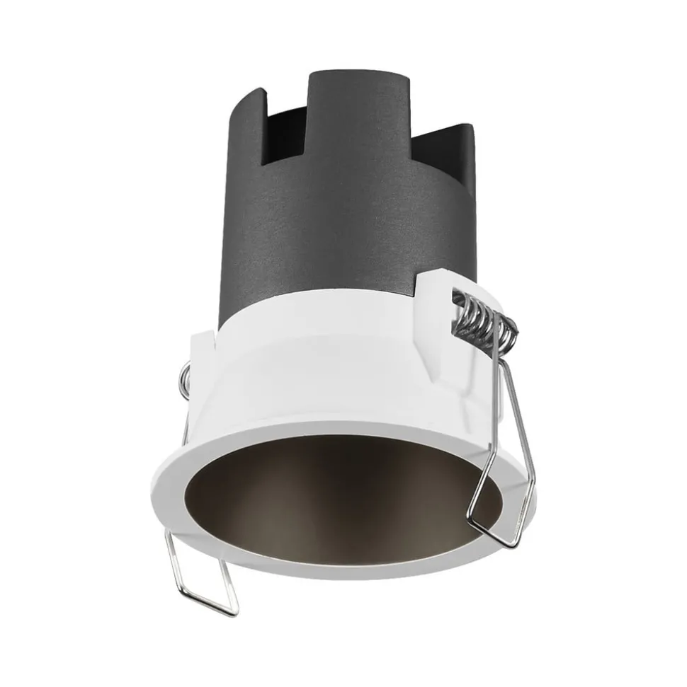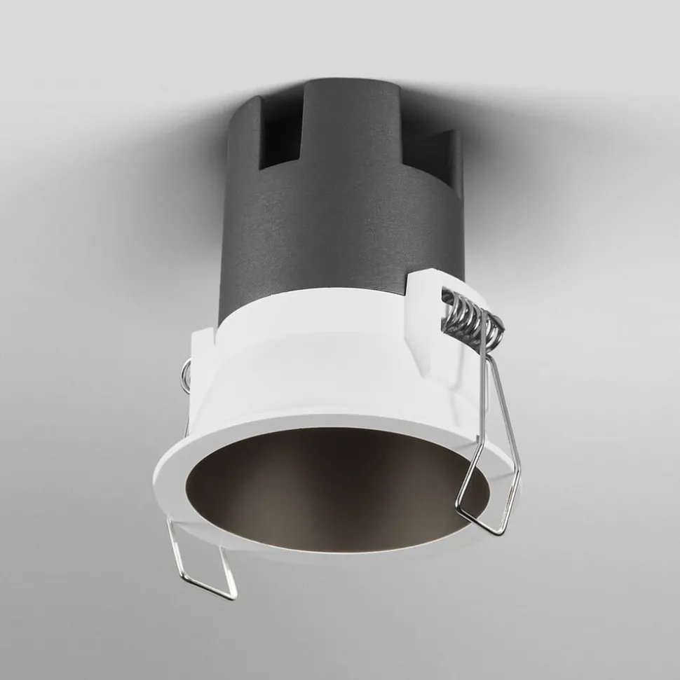 Ronde Twist LED inbouwdownlight met verzonken lichtuitstraling, Ø 7 cm, 5 WDe Twist LED inbouwplafondarmatuur kan op verschillende manieren worden gebruikt voor algemene verlichting en gerichte accentuering van zones in woonkamers, hotels en bedrijfsruimten. De middelbreed stralende (30°) LED-lichtbron is teruggeplaatst in de ronde aluminium behuizing en kan ook rondom met /- 15° worden gekanteld. Met de meegeleverde LED-driver (aan/uit) kan de inbouwspot worden aangesloten op 230 V. Gereedschapsloze stekkerverbindingen vergemakkelijken de installatie en de elektrische aansluiting. De meegeleverde veren worden beschermd door een siliconencoating. Exclusieve aansluitdoos.