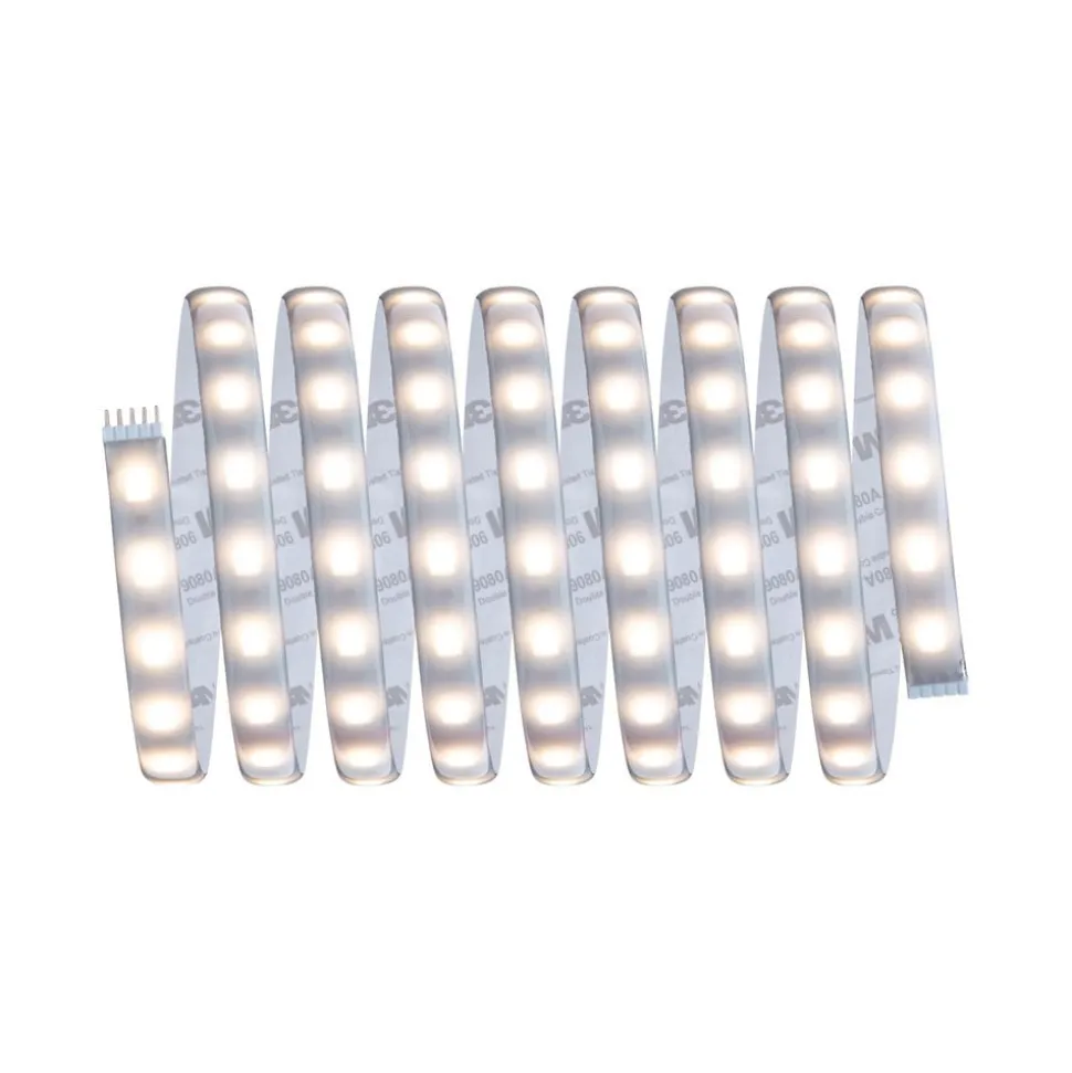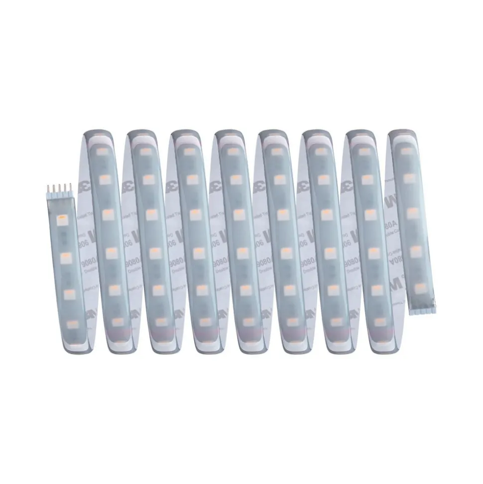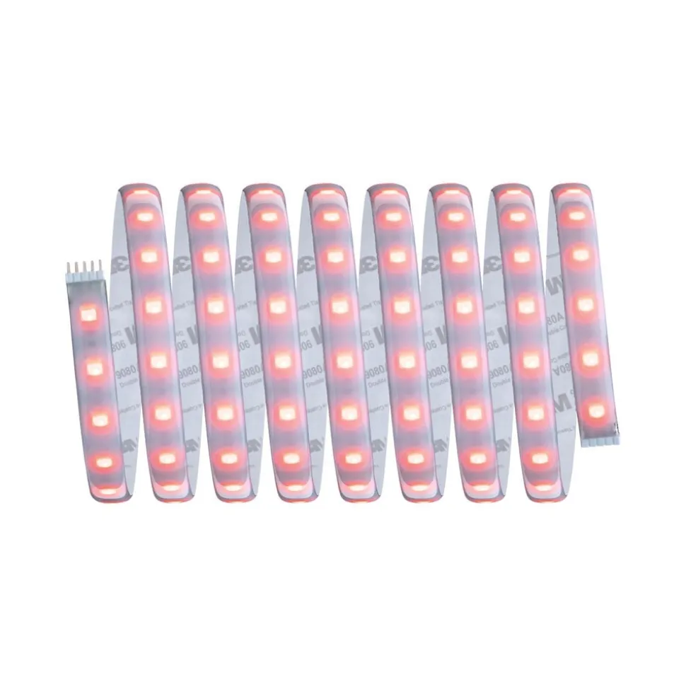 Veranderende kleuraccenten, gekleurd continu licht of warmwitte verlichting met een gezellige sfeer – alles is mogelijk met de basisset Max LED RGBW. 300 cm lange LED strip met zelfklevende achterkant. De installatie werkt zonder problemen dankzij de meegeleverde connector. De strip is verlengbaar met een uitbreidingsset via de accessoires. Verlening tot 500 cm. Geïntegreerde wisselfunctie voor de kleur. Bij de levering inbegrepen: Ballast en besturings-eenheid inclusief afstandsbediening.